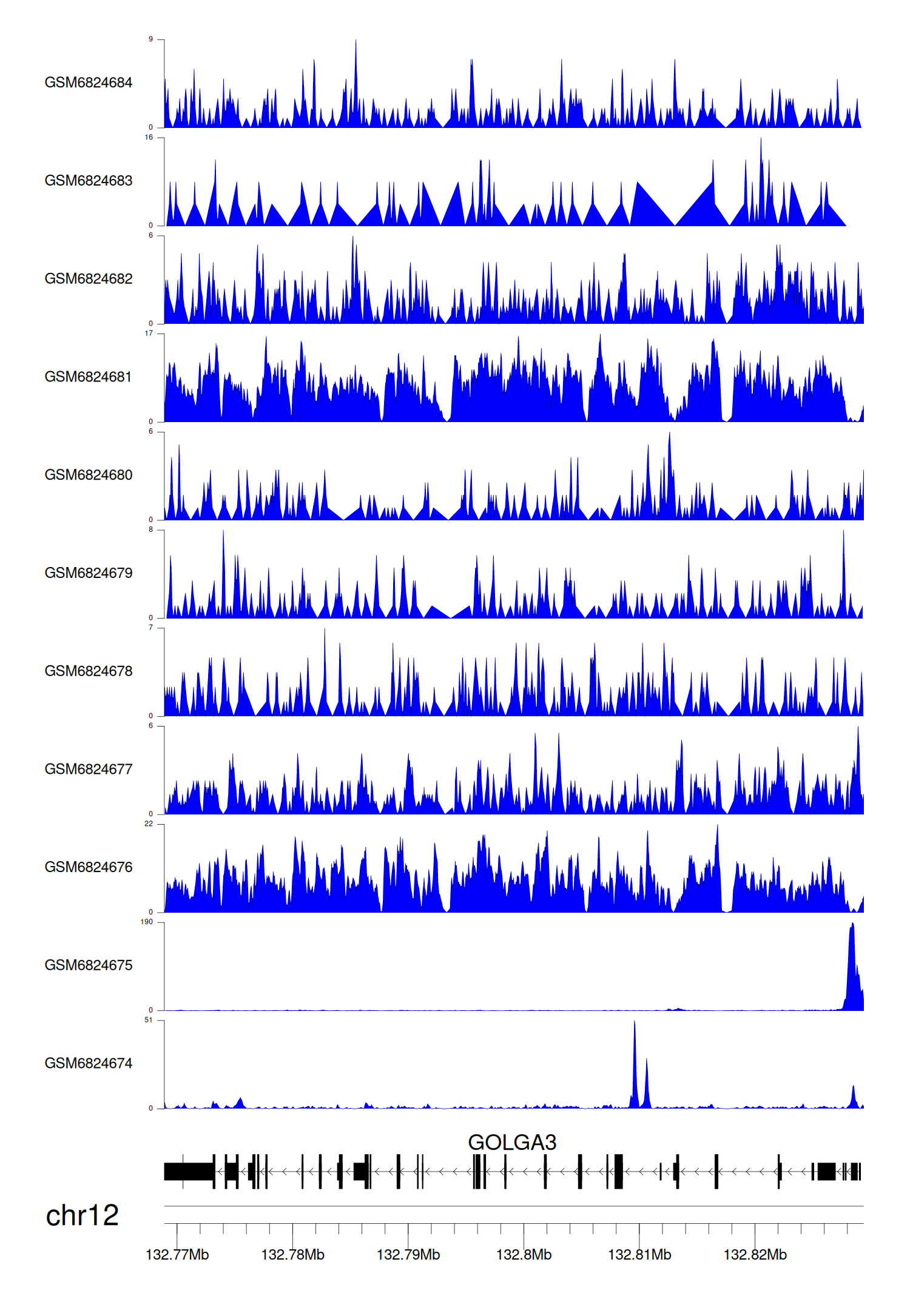 > Dataset: GSE144329 - GOLGA3 peak across samples