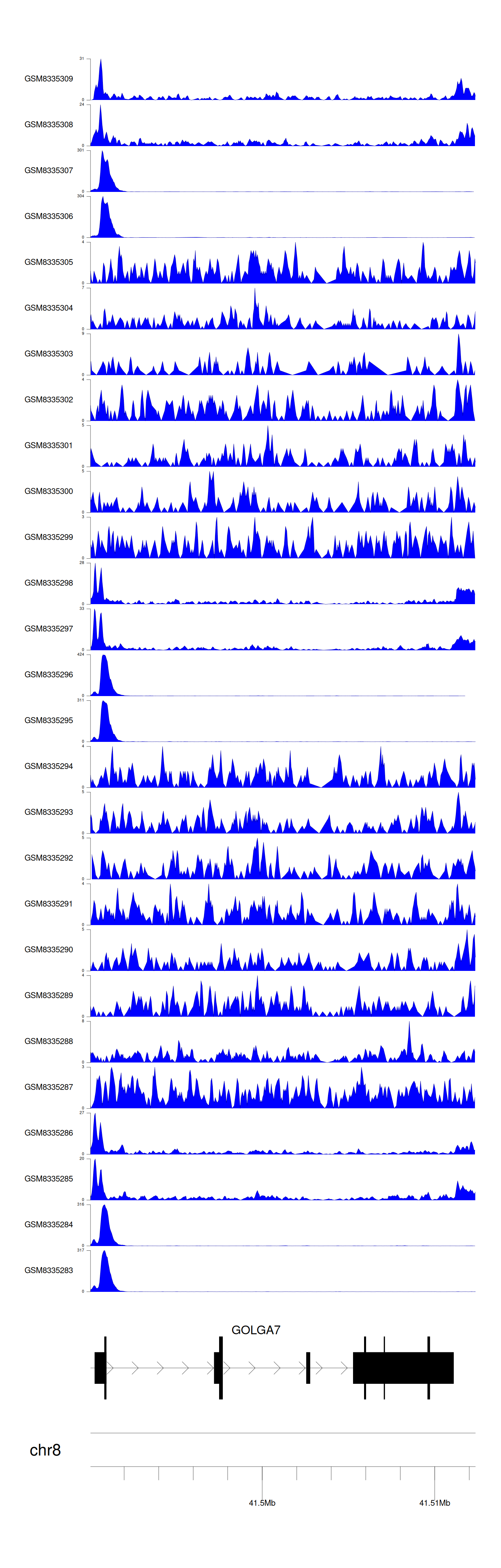 > Dataset: GSE270130 - GOLGA7 peak across samples