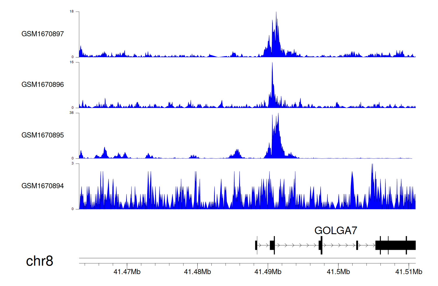> Dataset: GSE68402 - GOLGA7 peak across samples
