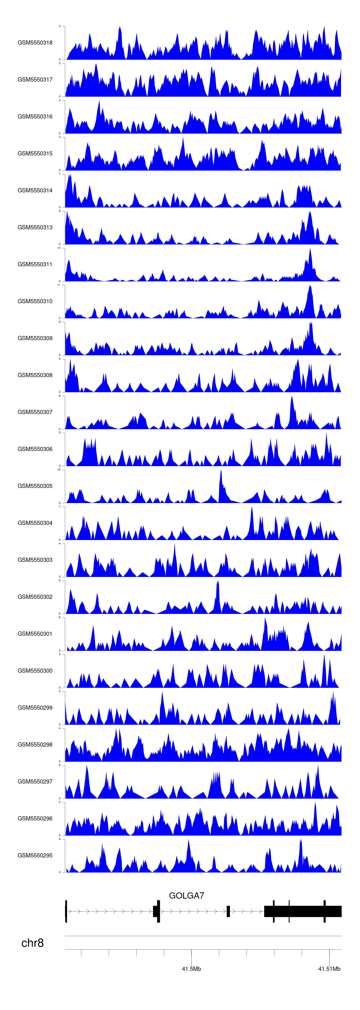 > Dataset: GSE143026 - GOLGA7 peak across samples