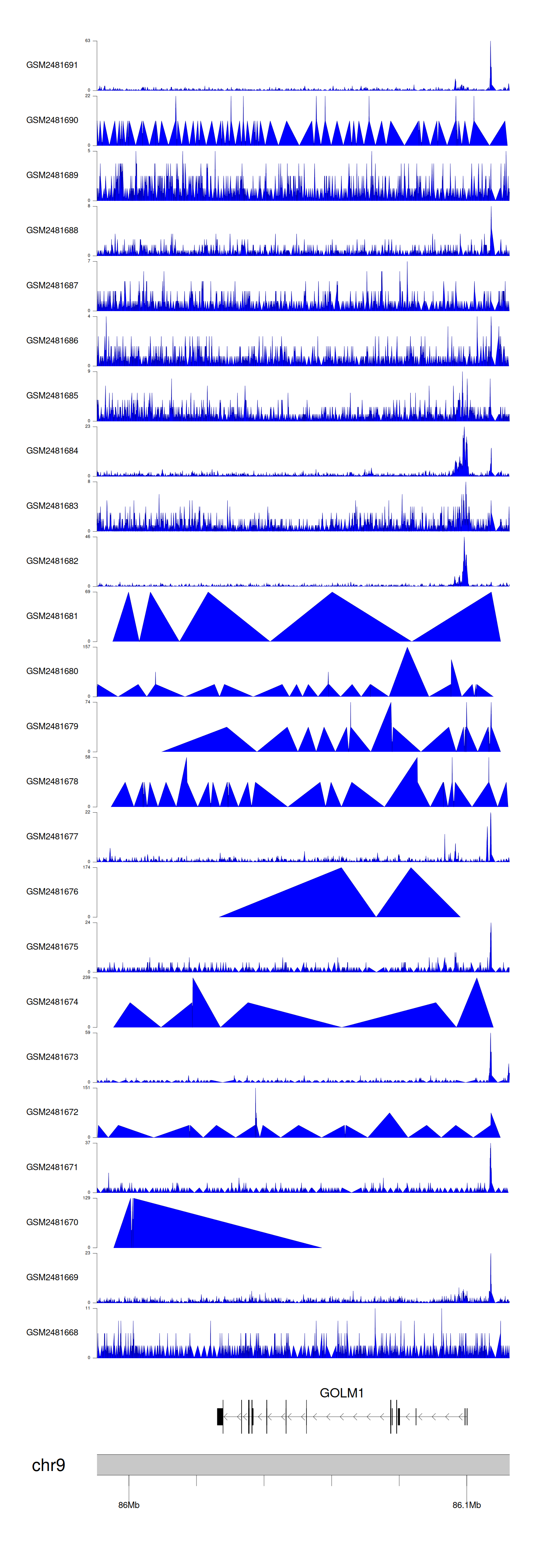 > Dataset: GSE94732 - GOLM1 peak across samples