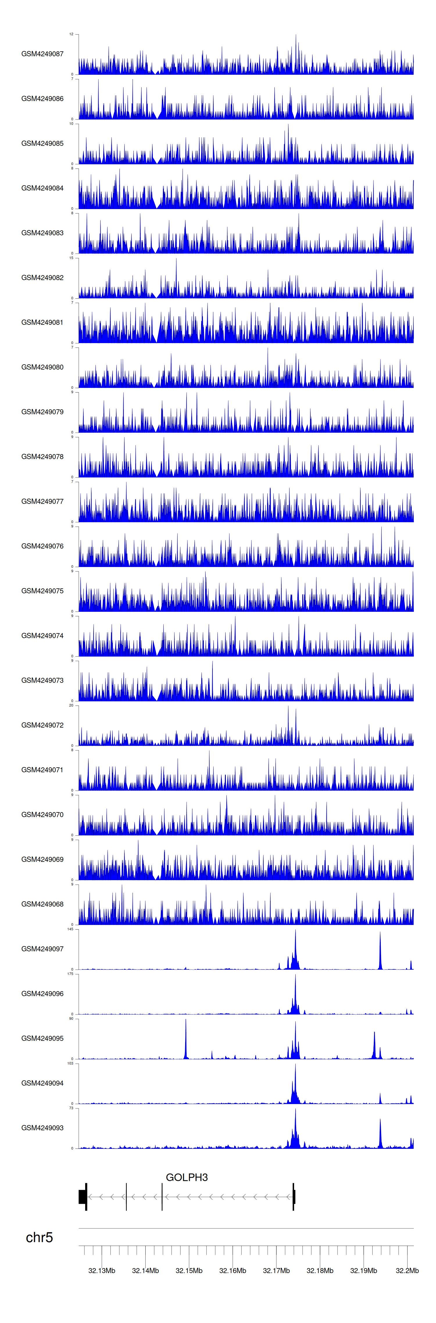 > Dataset: GSE143026 - GOLPH3 peak across samples
