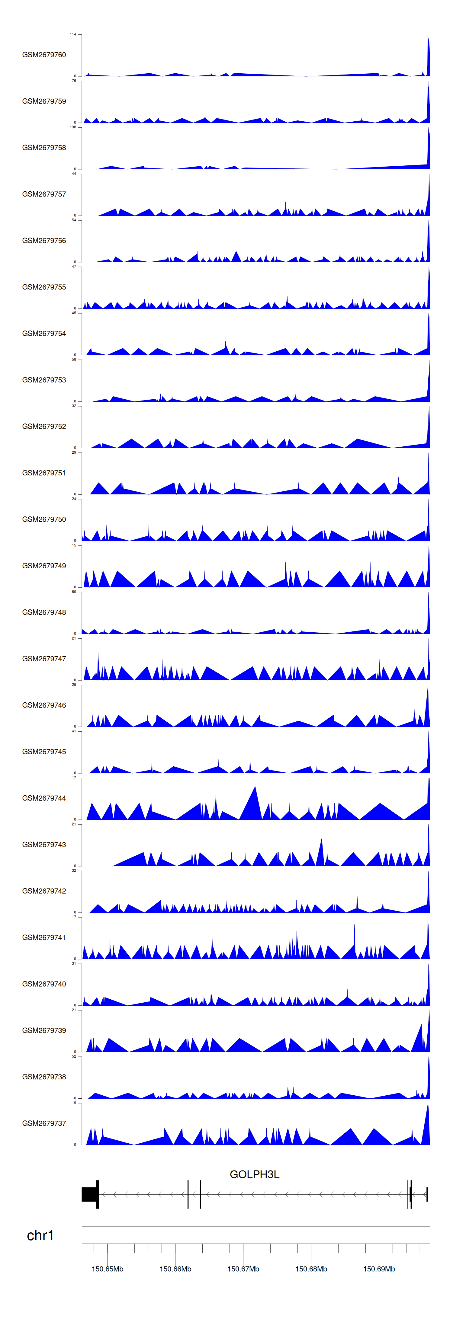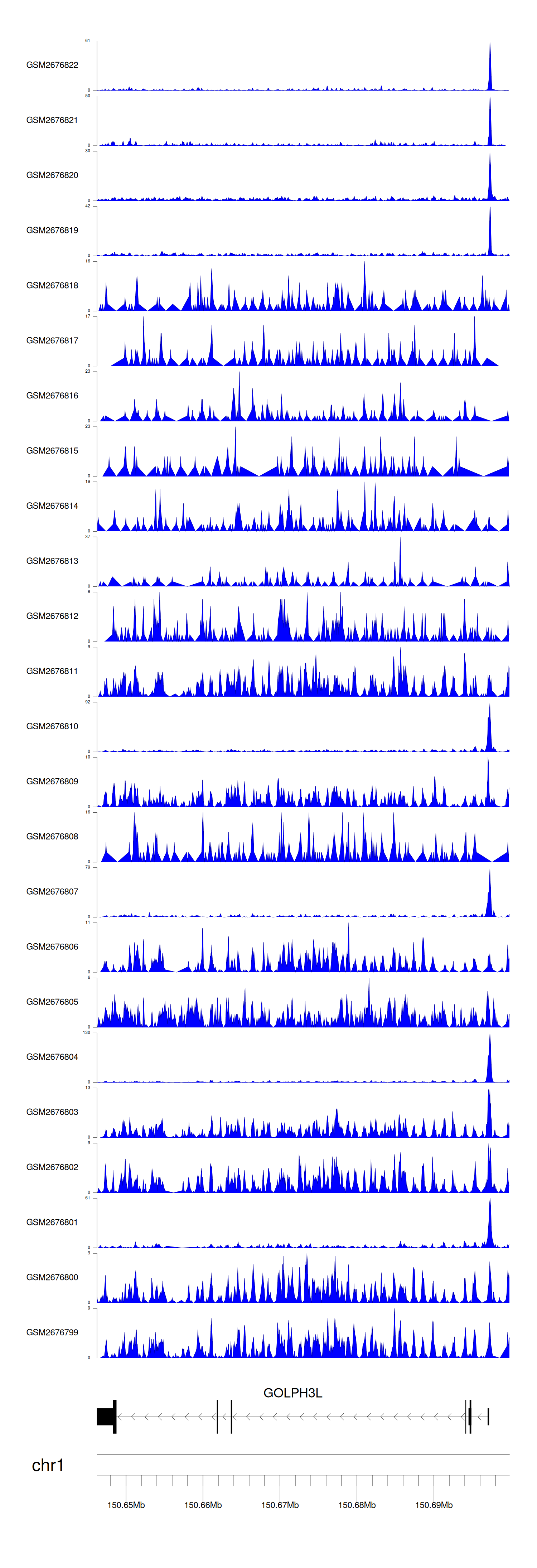 > Dataset: GSE100376 - GOLPH3L peak across samples