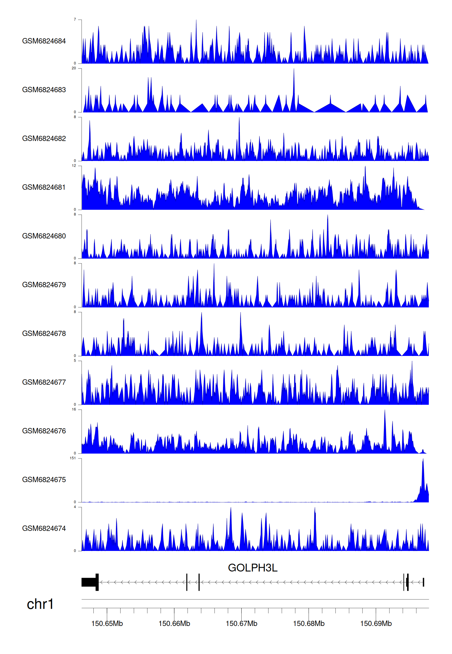 > Dataset: GSE165703 - GOLPH3L peak across samples