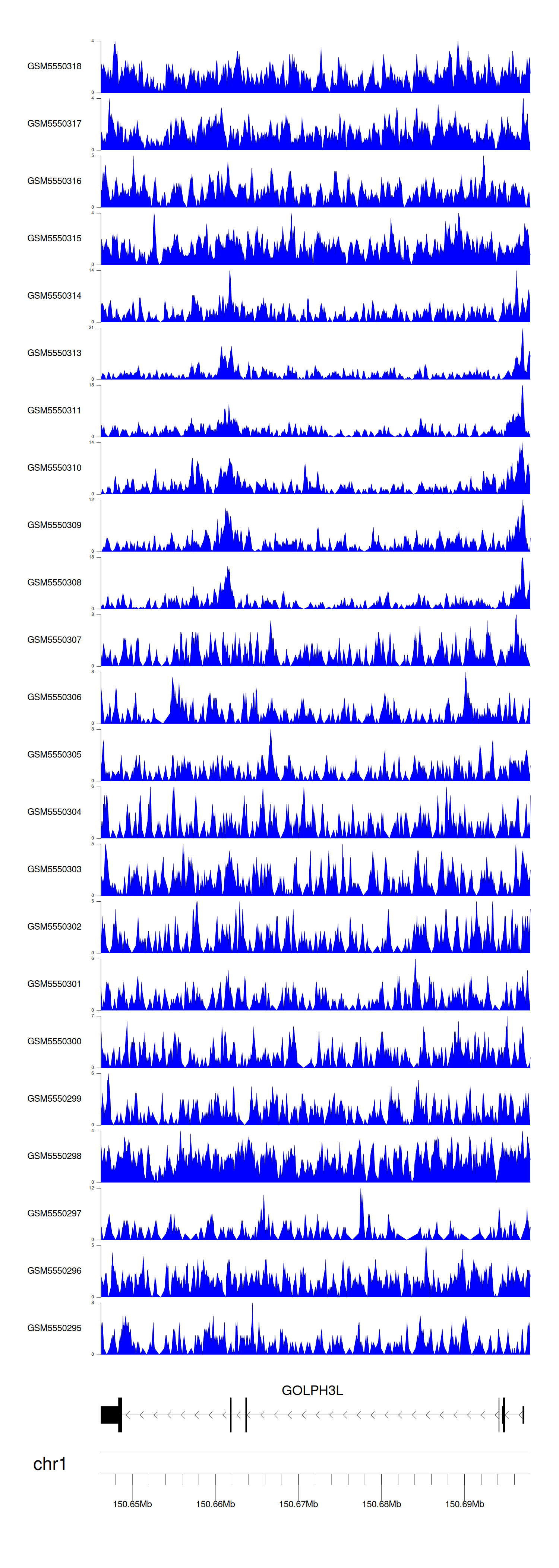 > Dataset: GSE143026 - GOLPH3L peak across samples