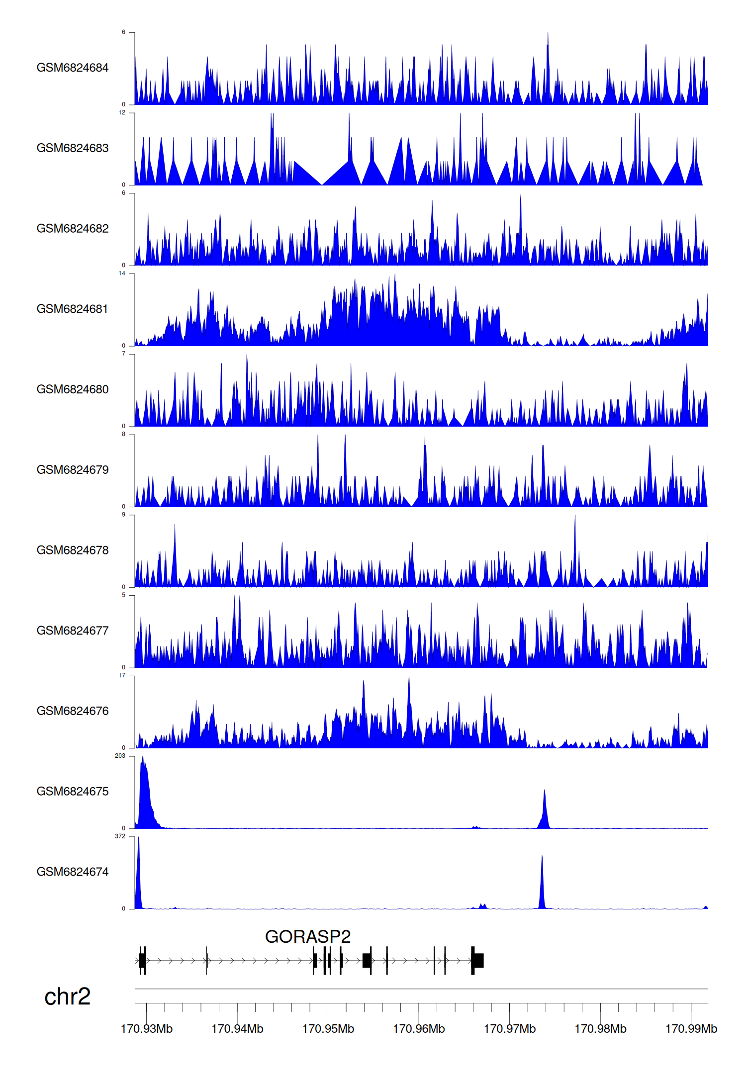 > Dataset: GSE165703 - GORASP2 peak across samples
