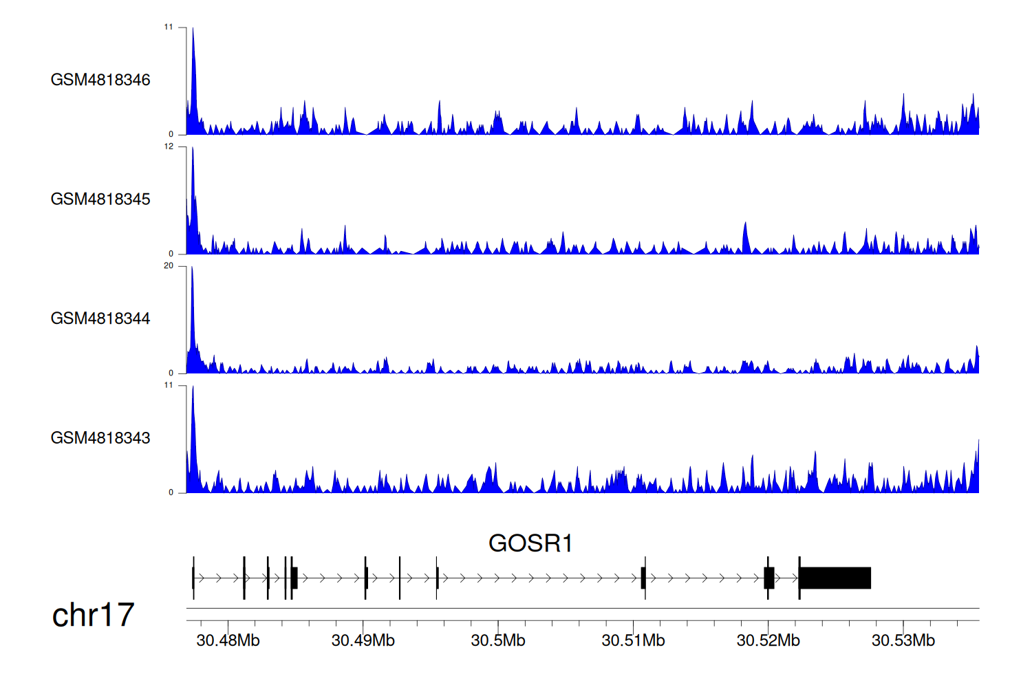 > Dataset: GSE131257 - GOSR1 peak across samples
