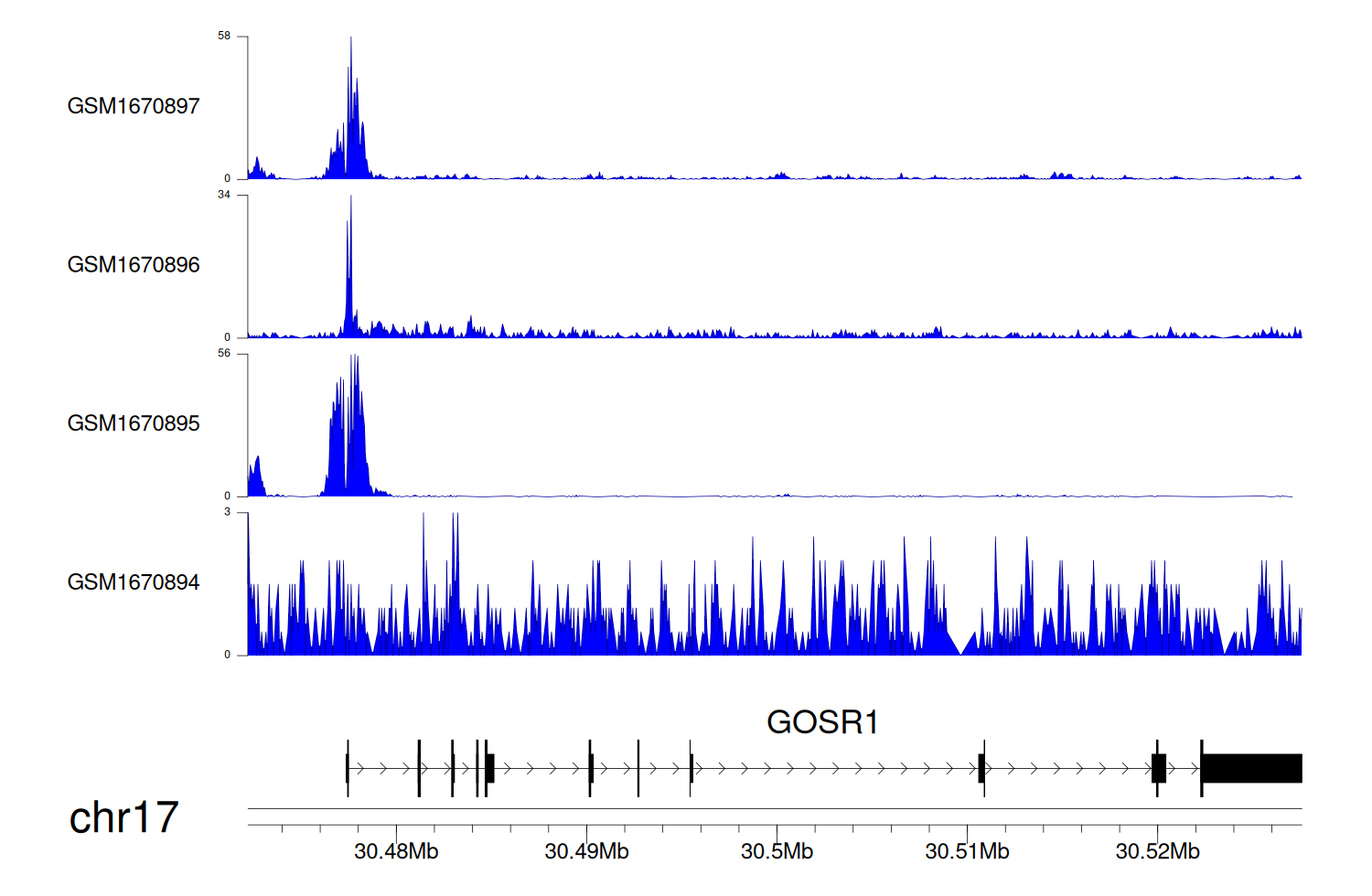 > Dataset: GSE68402 - GOSR1 peak across samples