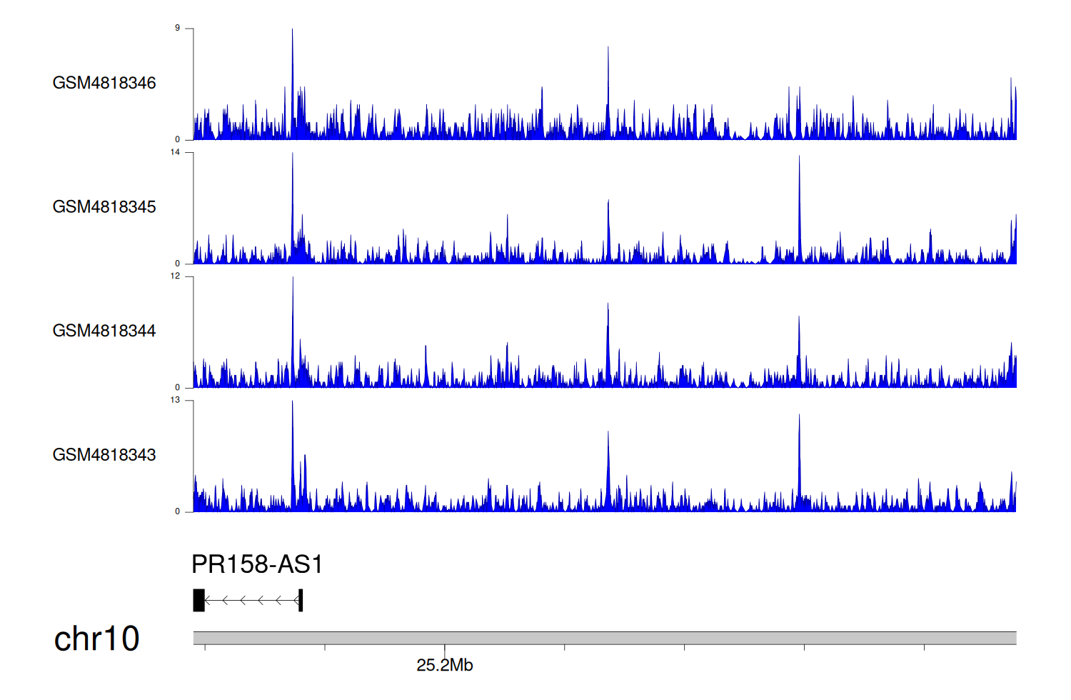 > Dataset: GSE131257 - GPR158-AS1 peak across samples