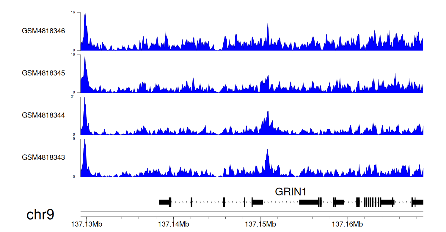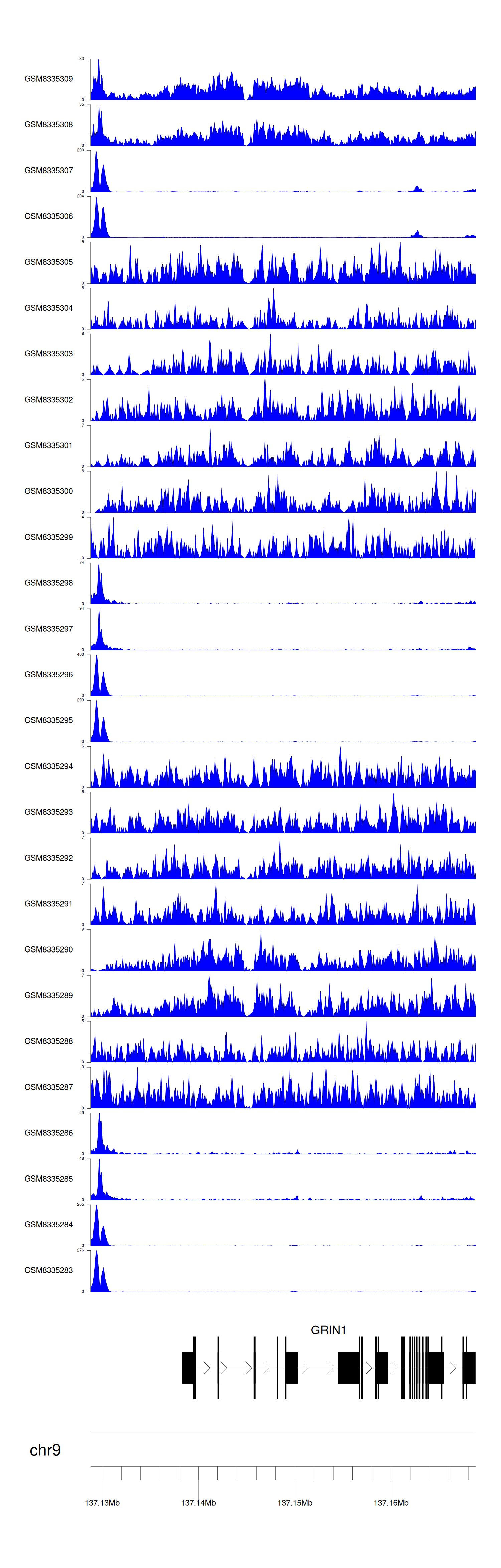 > Dataset: GSE131257 - GRIN1 peak across samples
