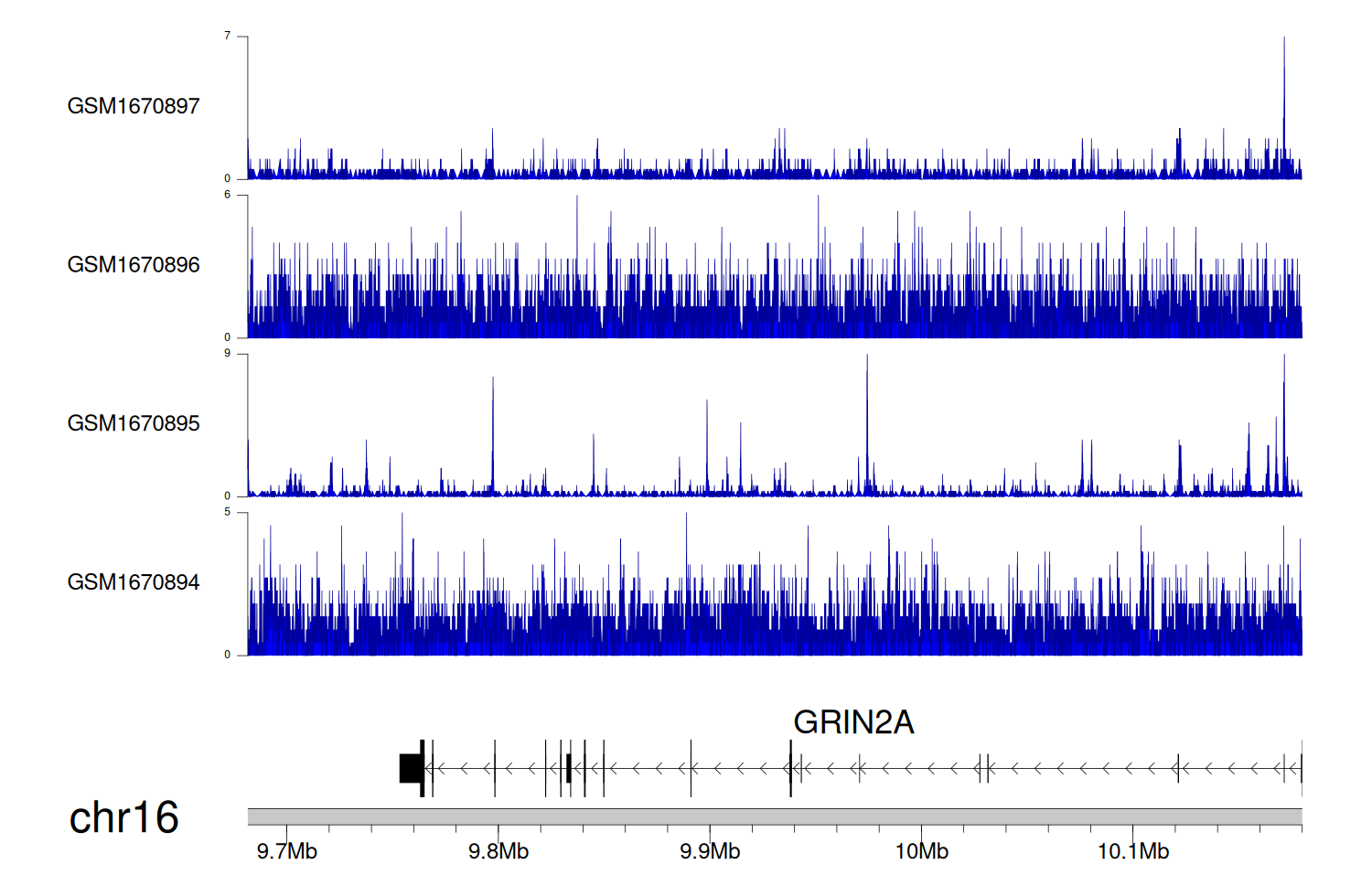 > Dataset: GSE68402 - GRIN2A peak across samples