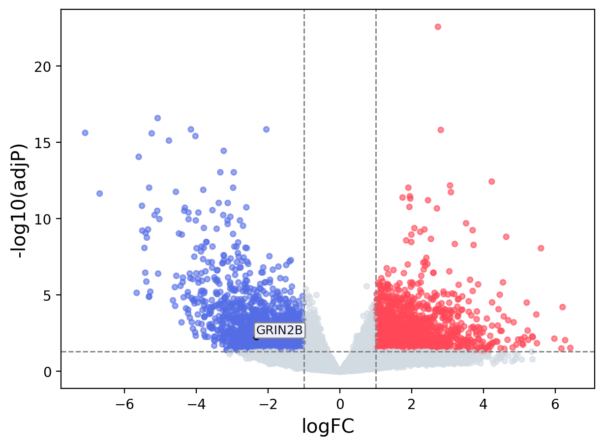 When the query gene is differentially changed in the dataset, a volcano/bar plot will be displayed.