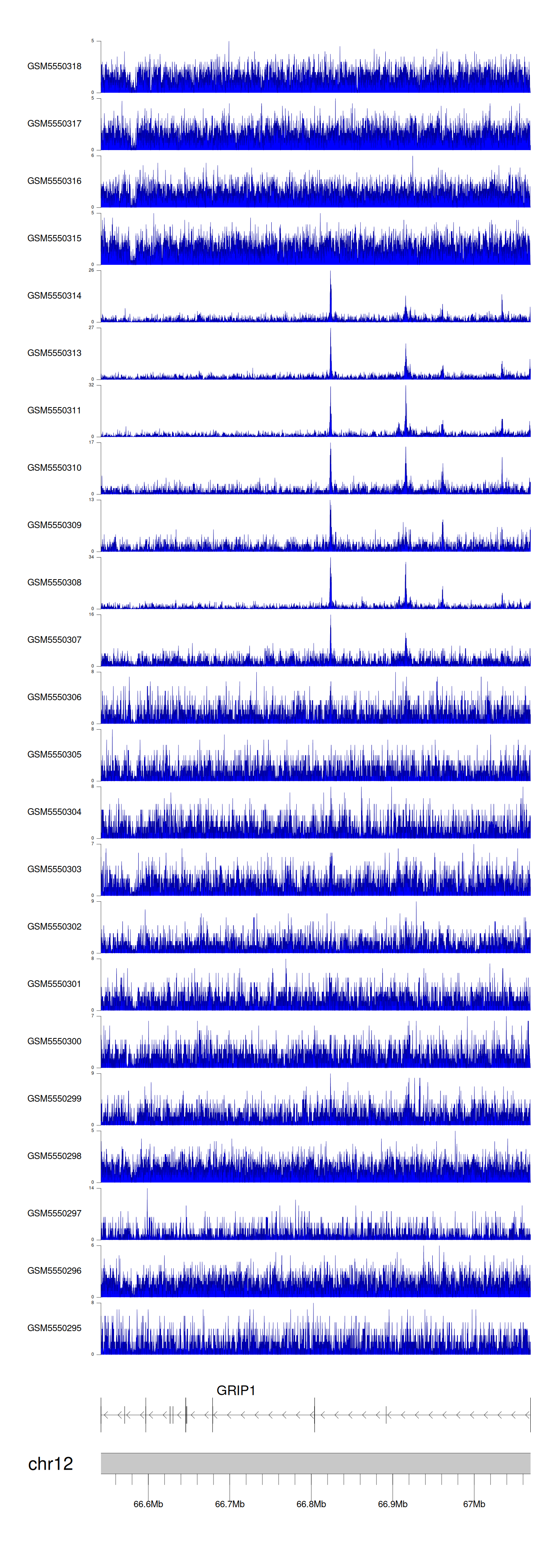 > Dataset: GSE143026 - GRIP1 peak across samples