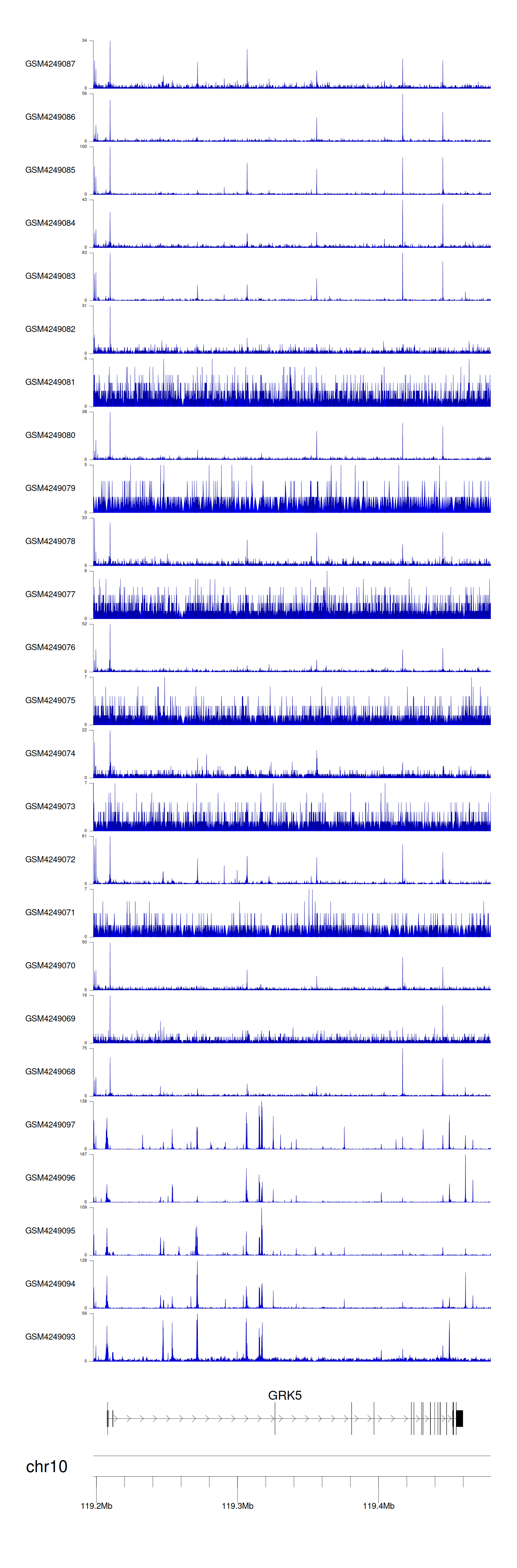 > Dataset: GSE143026 - GRK5 peak across samples