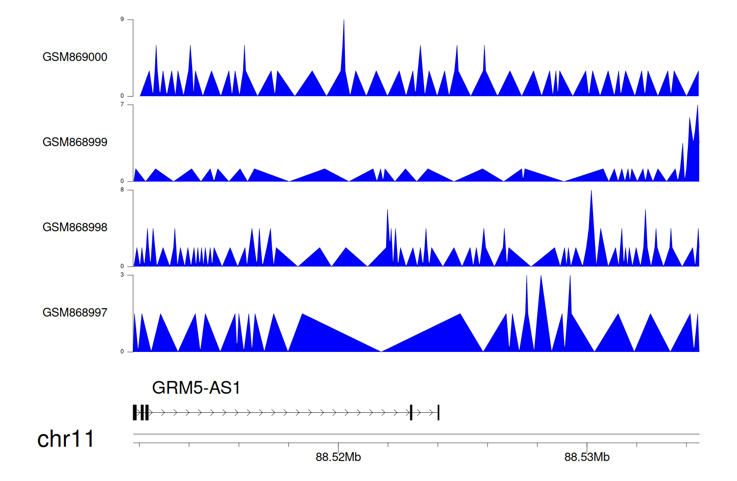 > Dataset: GSE68402 - GRM5-AS1 peak across samples