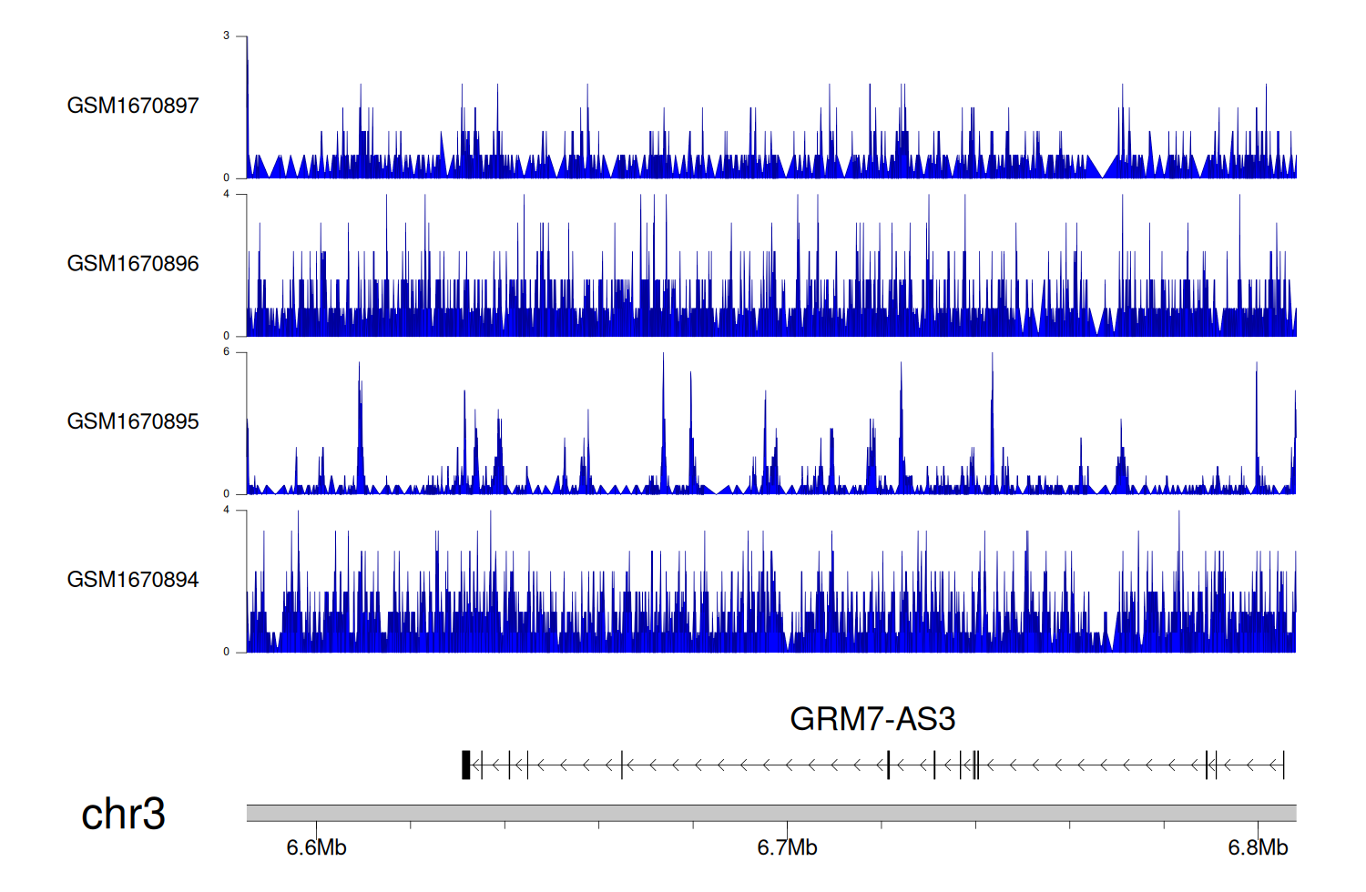 > Dataset: GSE68402 - GRM7-AS3 peak across samples