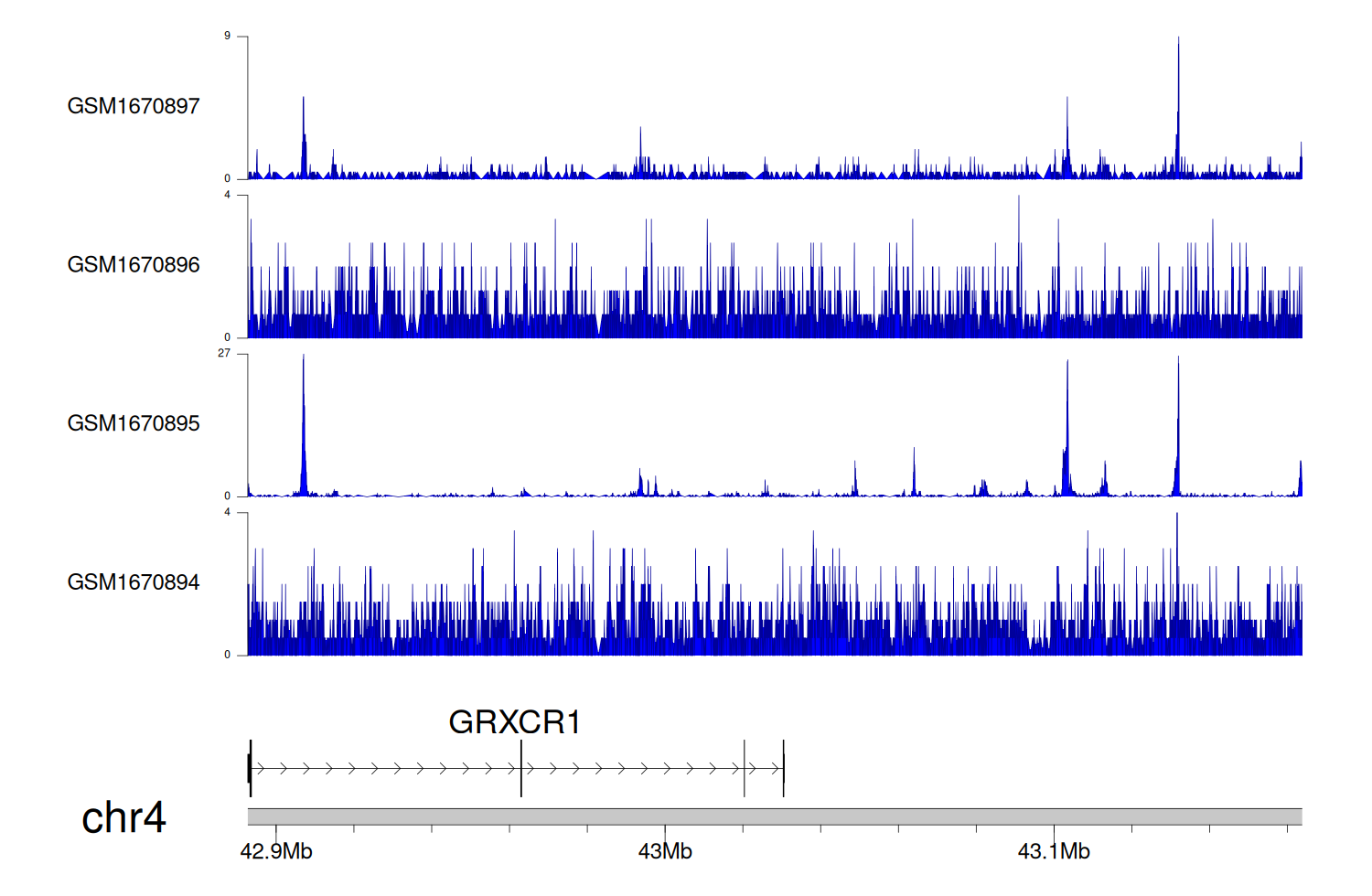 > Dataset: GSE100400 - GRXCR1 peak across samples