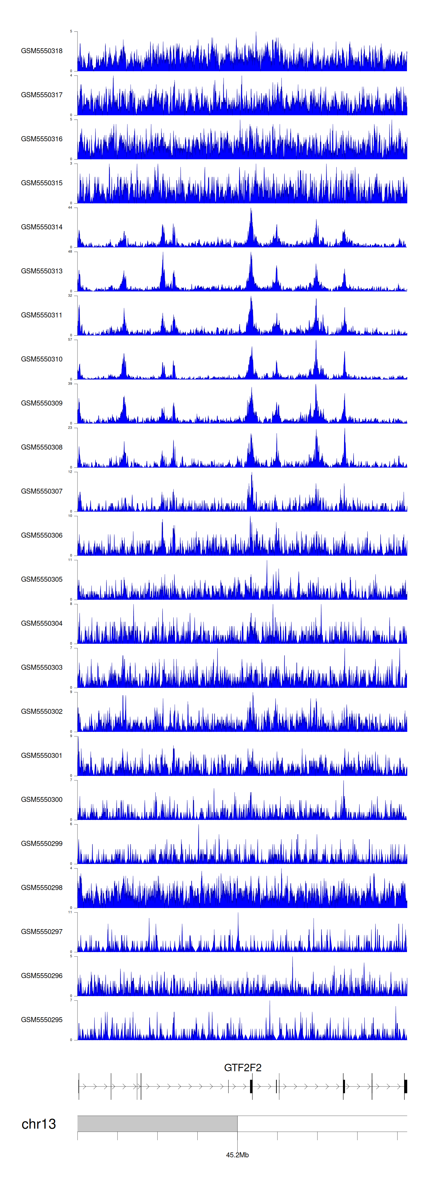 > Dataset: GSE143026 - GTF2F2 peak across samples