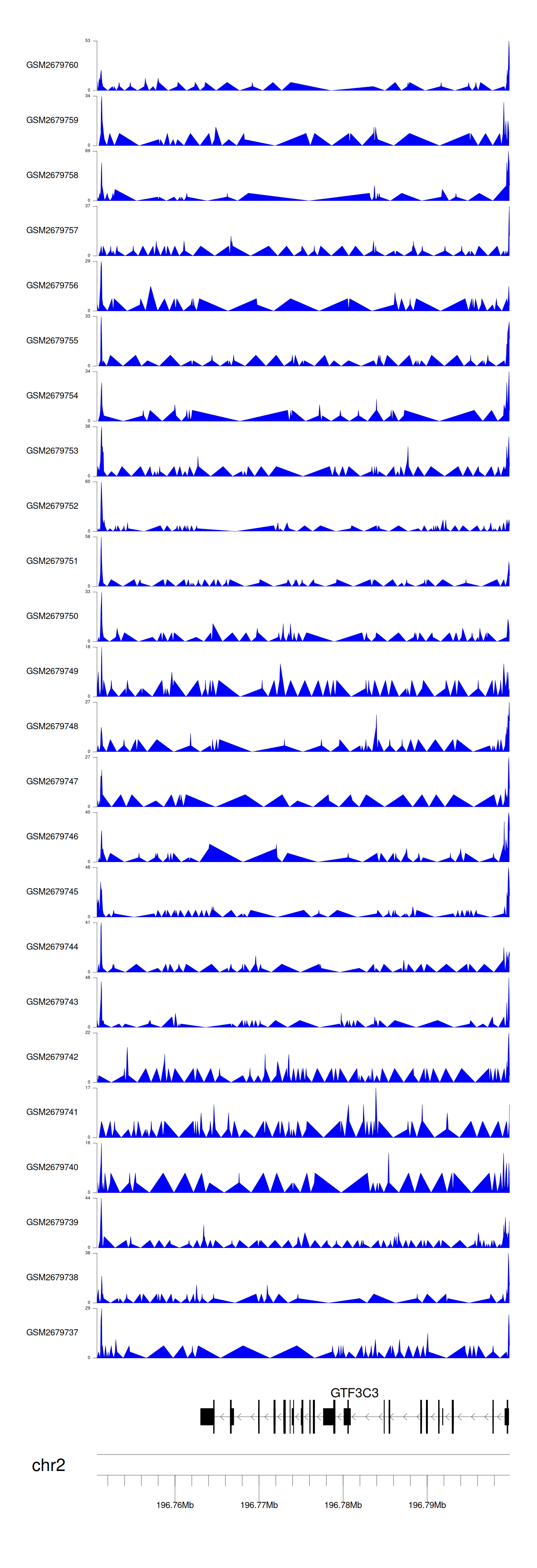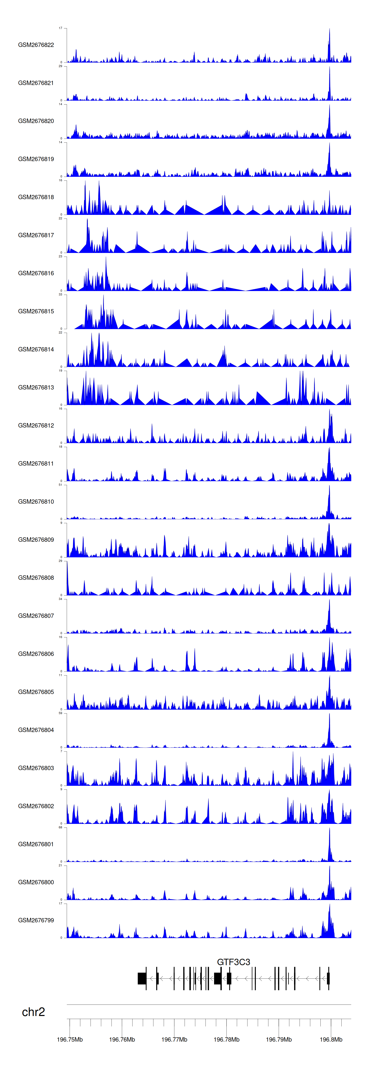> Dataset: GSE100376 - GTF3C3 peak across samples