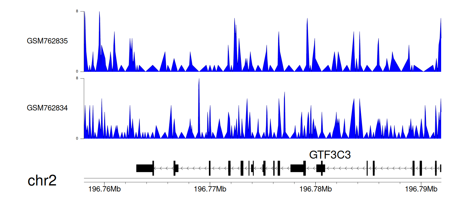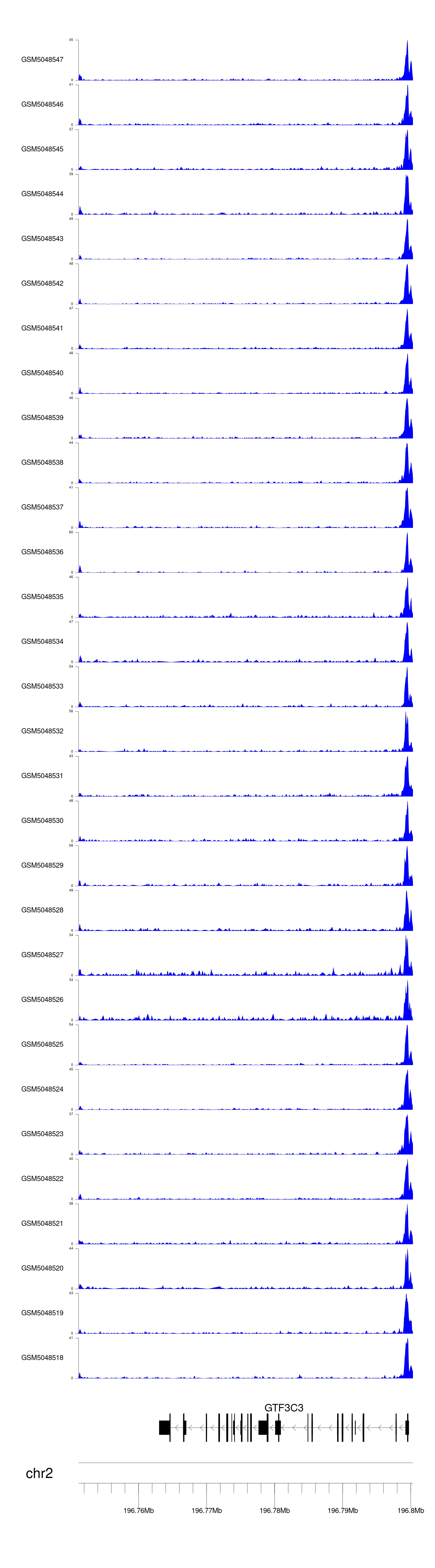 > Dataset: GSE30738 - GTF3C3 peak across samples
