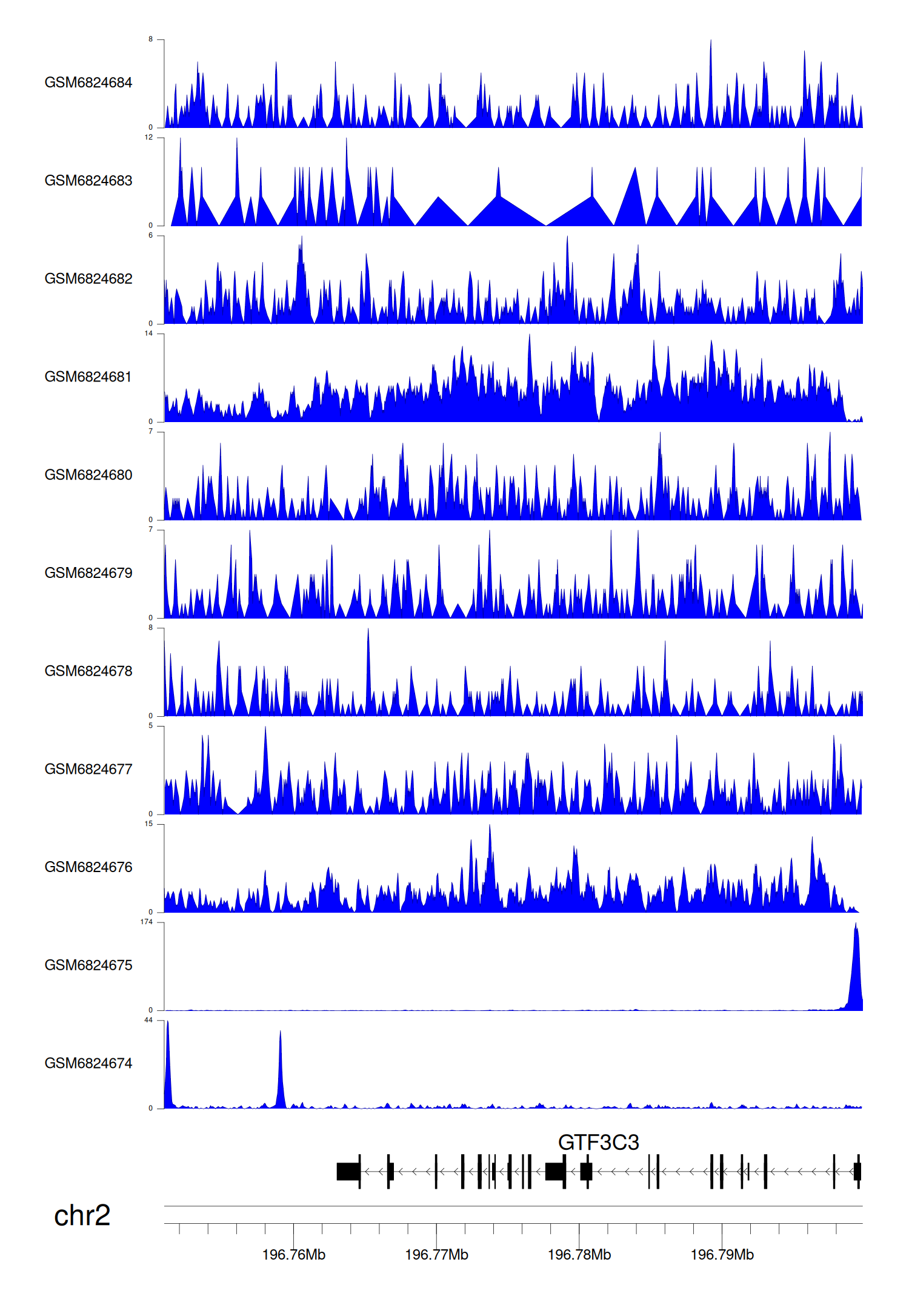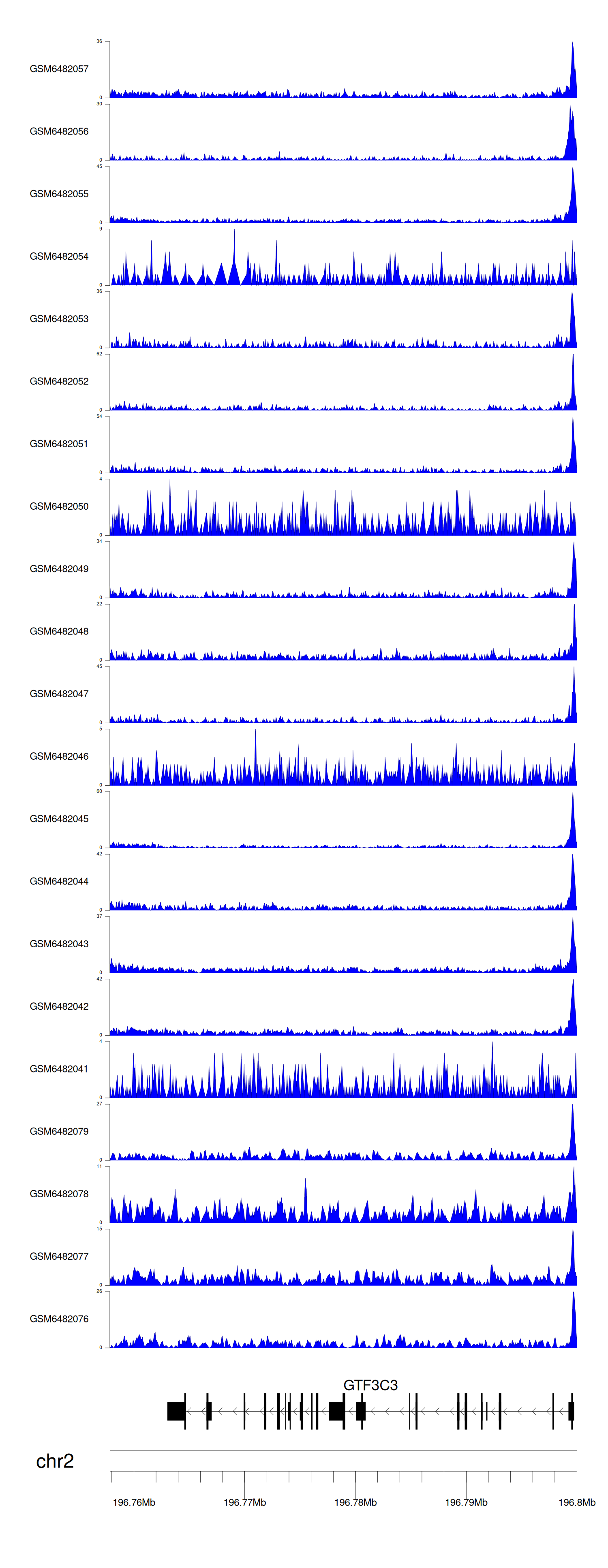 > Dataset: GSE165703 - GTF3C3 peak across samples