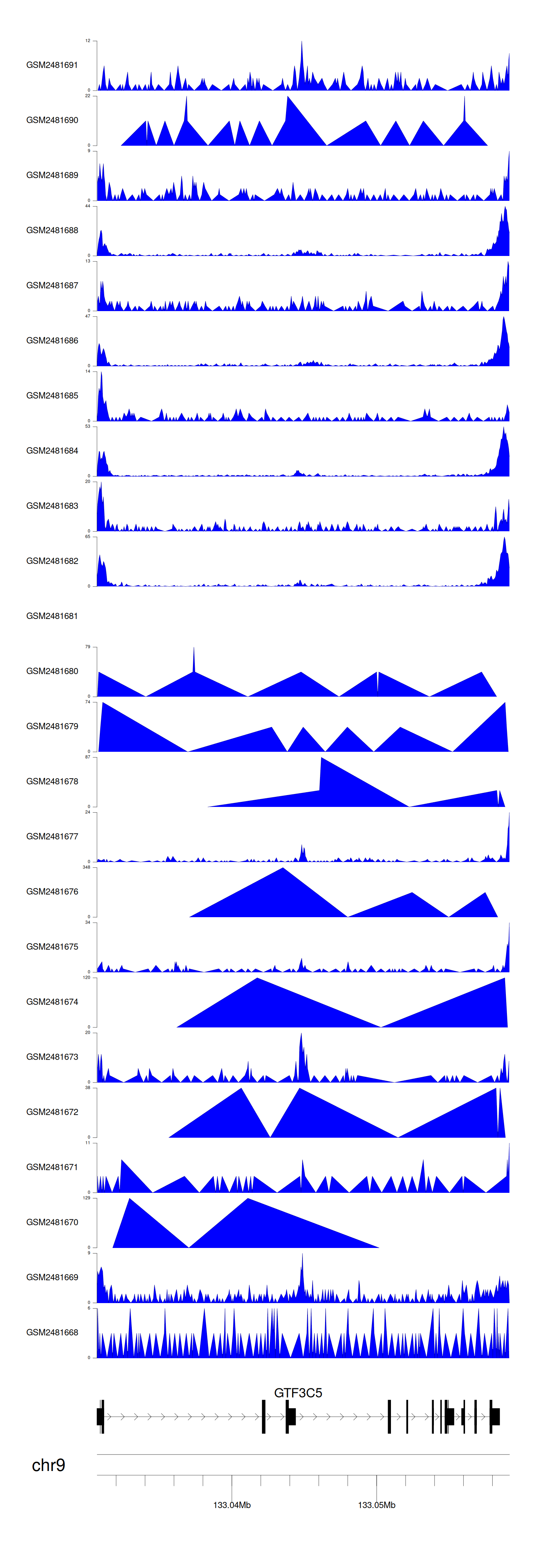 > Dataset: GSE94732 - GTF3C5 peak across samples