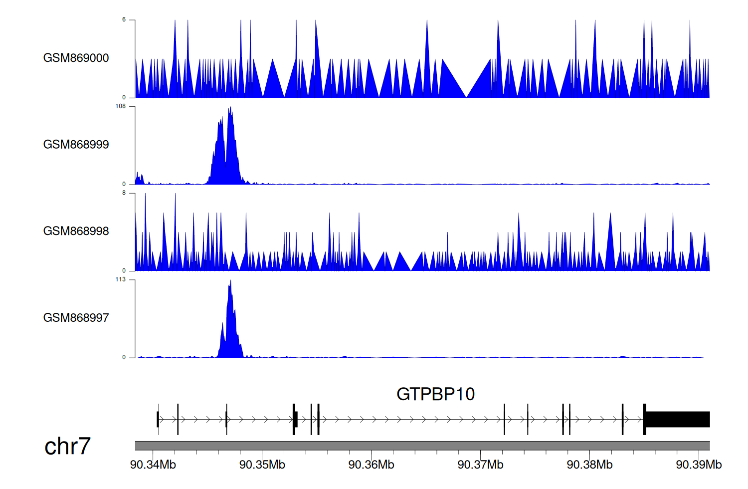 > Dataset: GSE68402 - GTPBP10 peak across samples