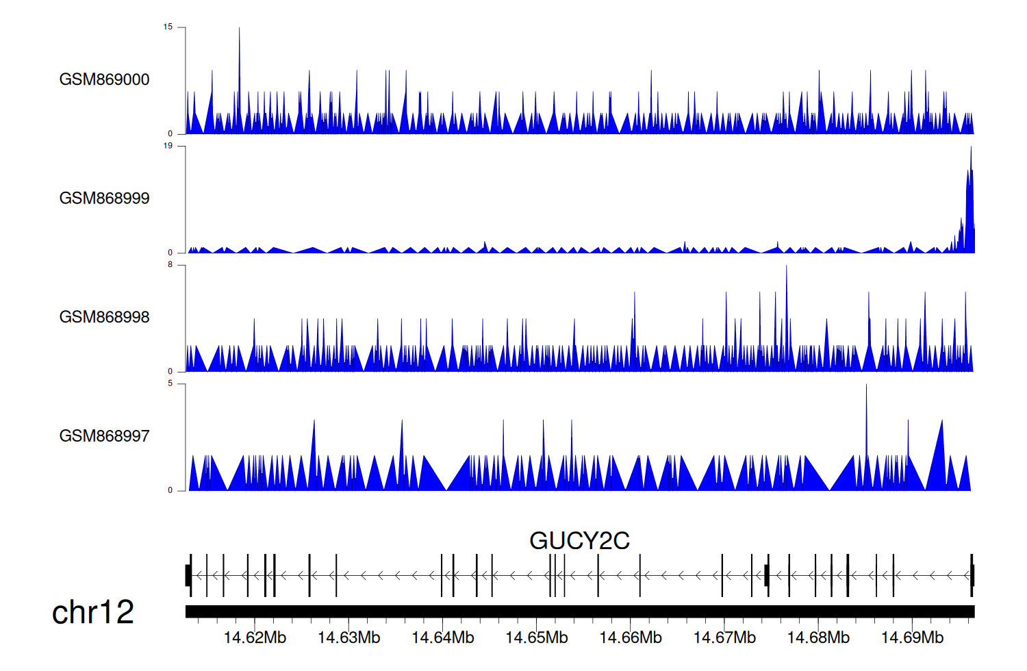 > Dataset: GSE68402 - GUCY2C peak across samples