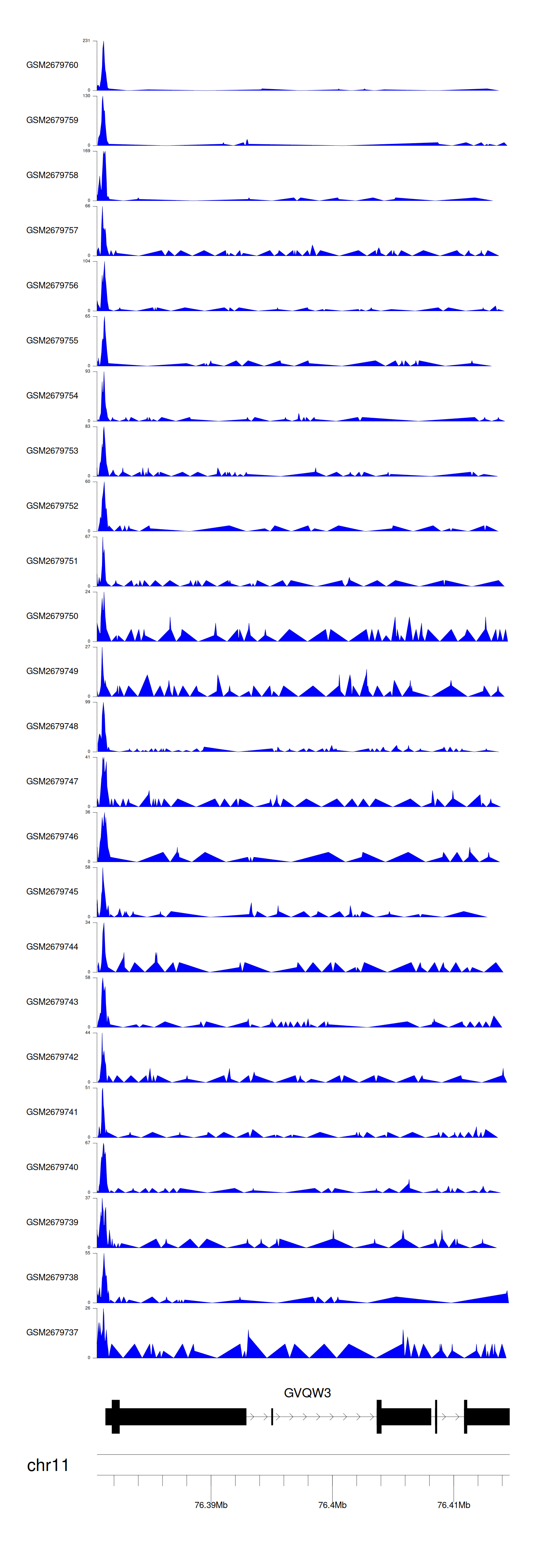 > Dataset: GSE100376 - GVQW3 peak across samples