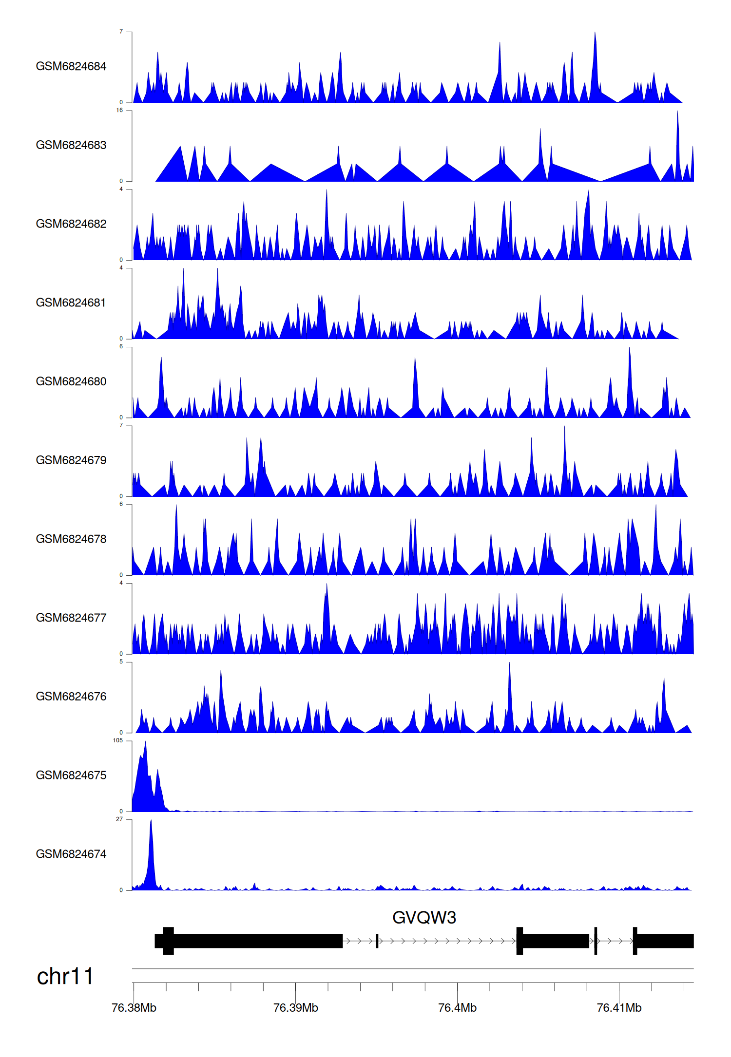 > Dataset: GSE165705 - GVQW3 peak across samples