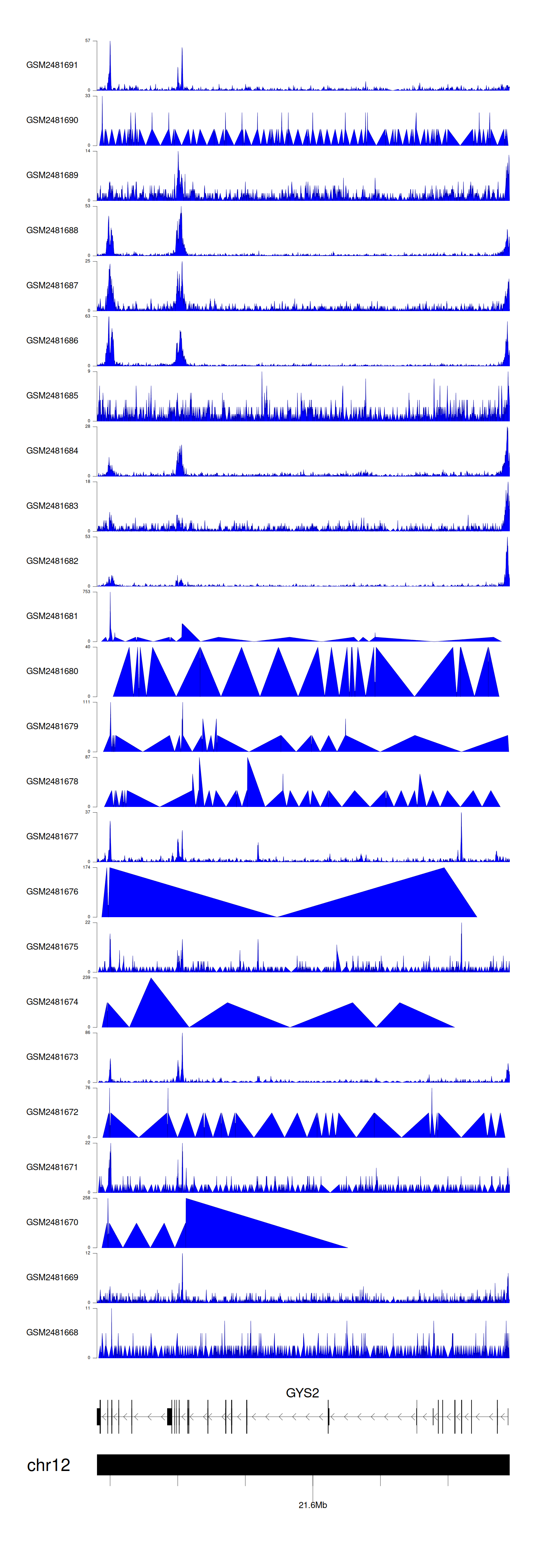 > Dataset: GSE94732 - GYS2 peak across samples