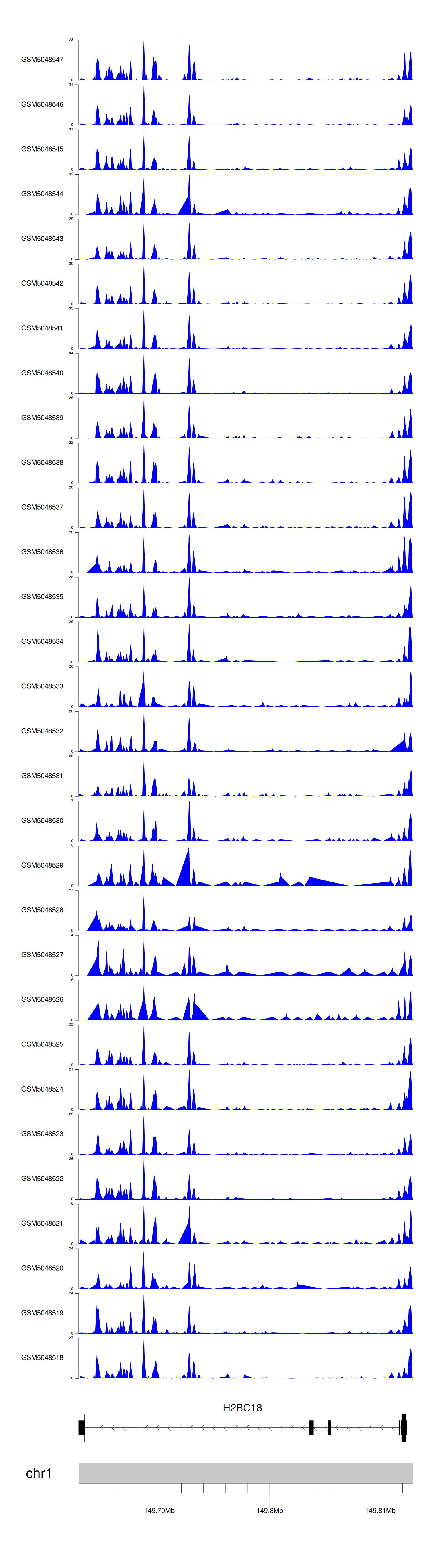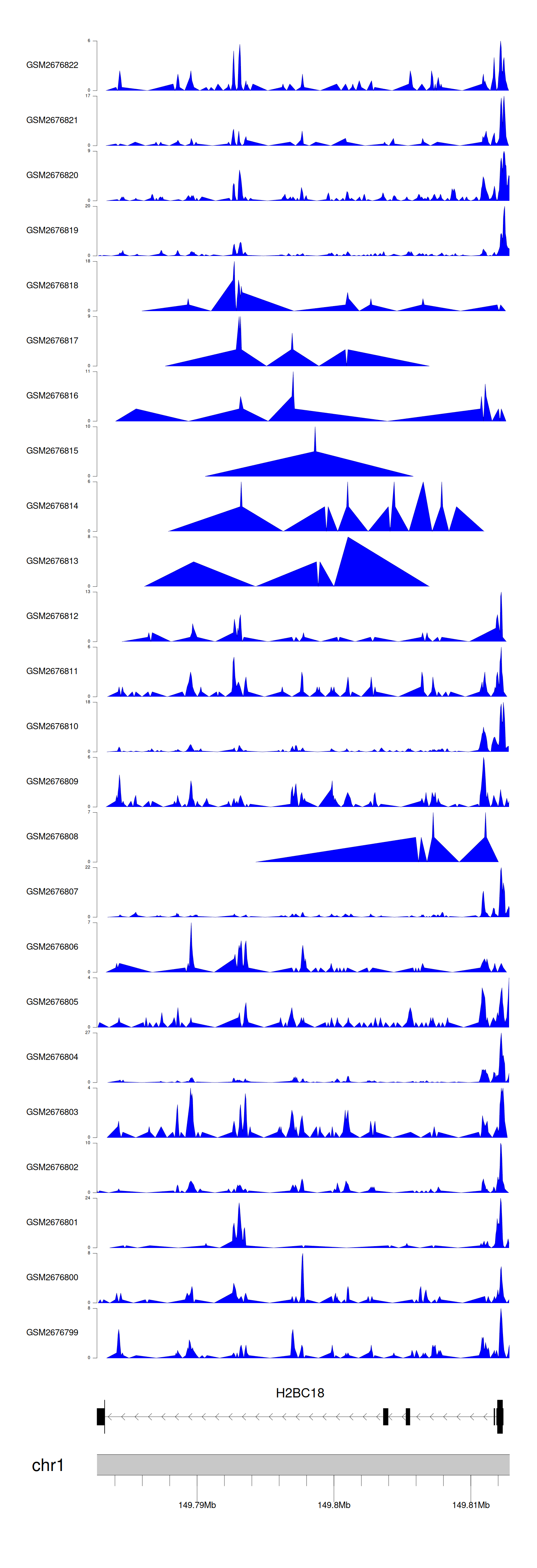 > Dataset: GSE211651 - H2BC18 peak across samples