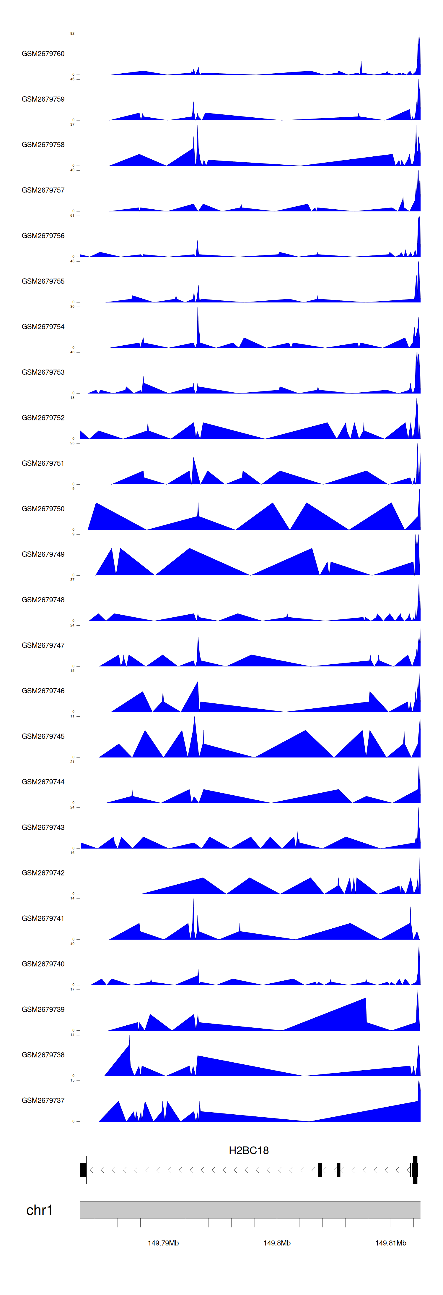 > Dataset: GSE100376 - H2BC18 peak across samples