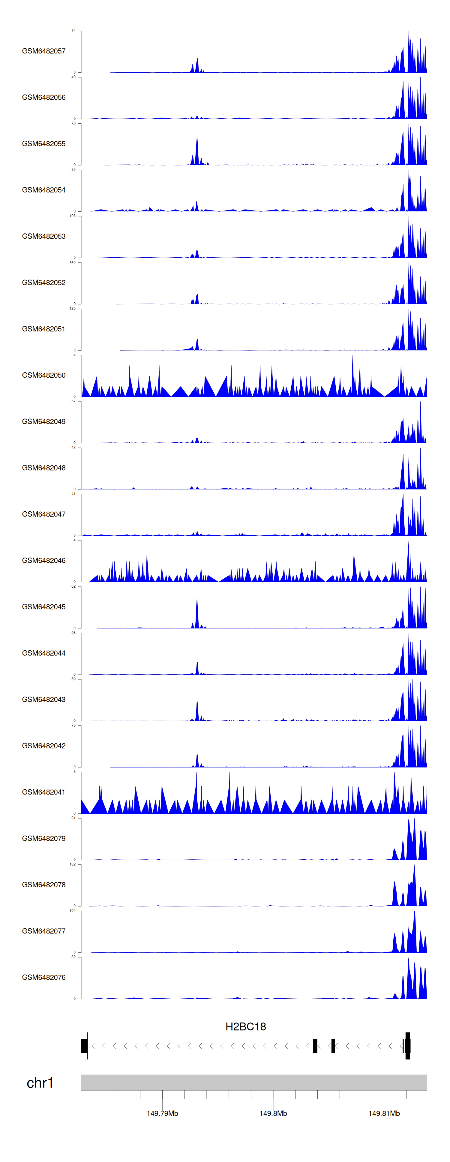 > Dataset: GSE165703 - H2BC18 peak across samples