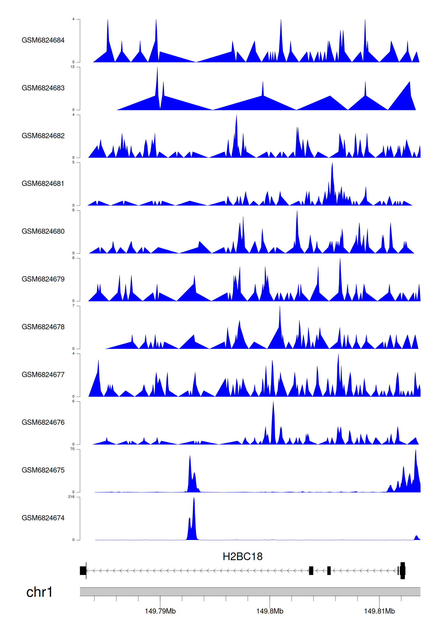 > Dataset: GSE144329 - H2BC18 peak across samples