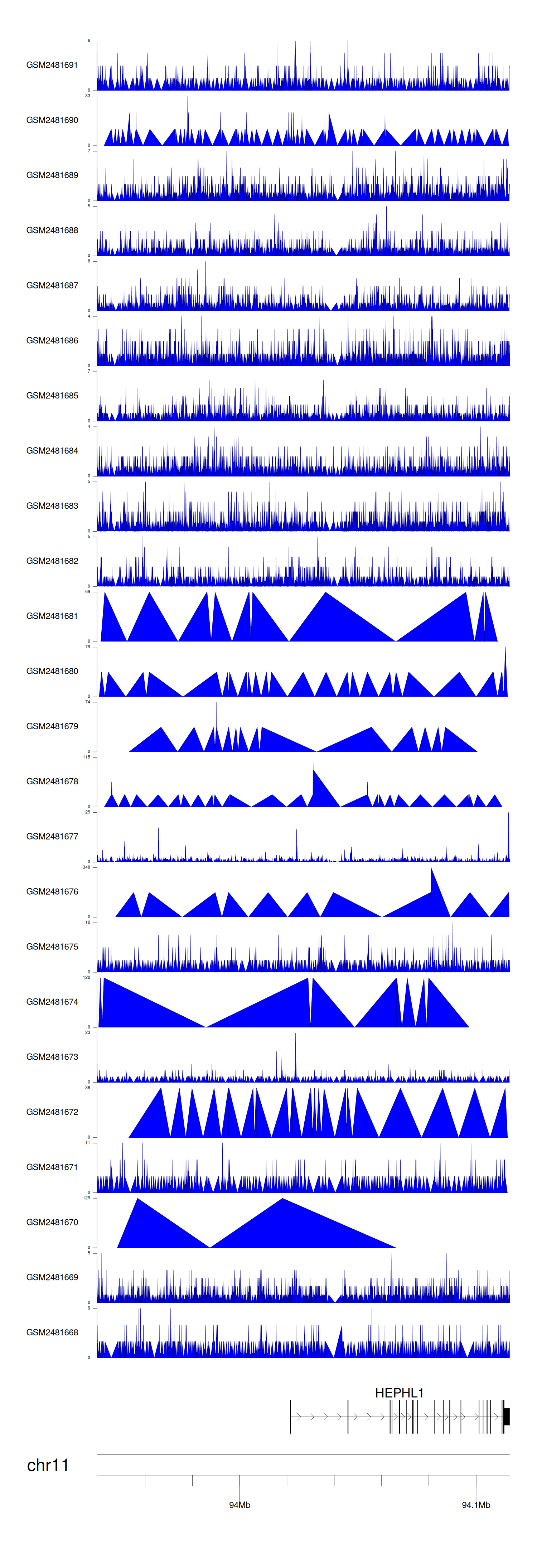 Target gene [HEPHL1] related to VISs