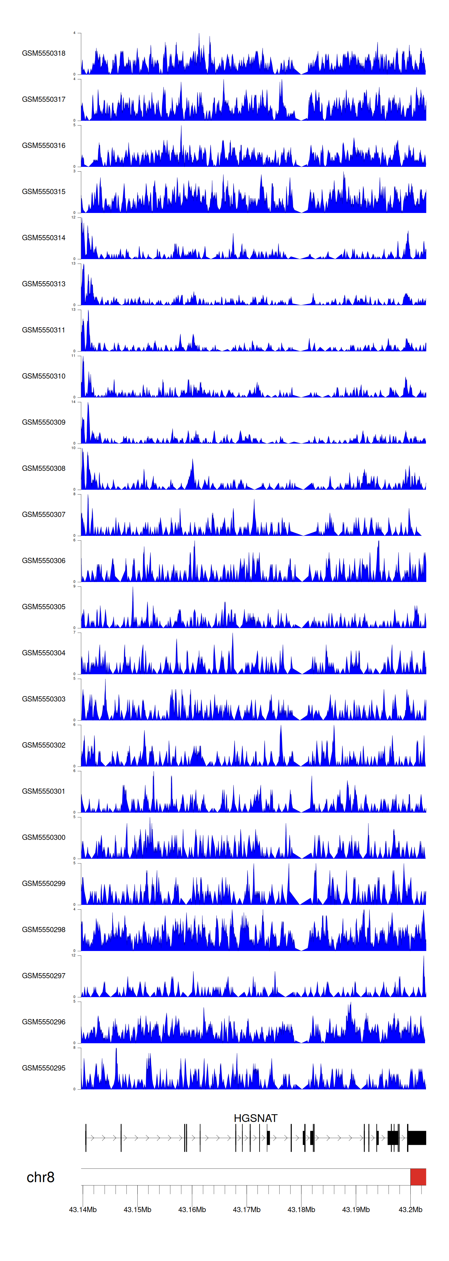 > Dataset: GSE143026 - HGSNAT peak across samples