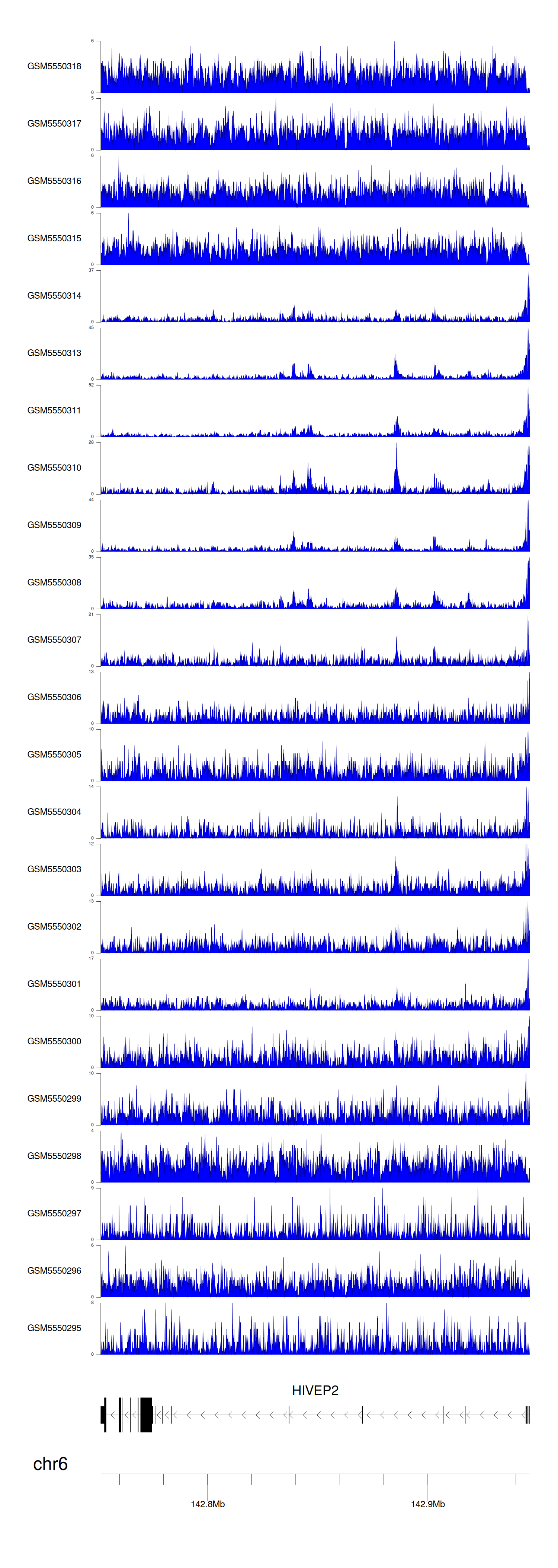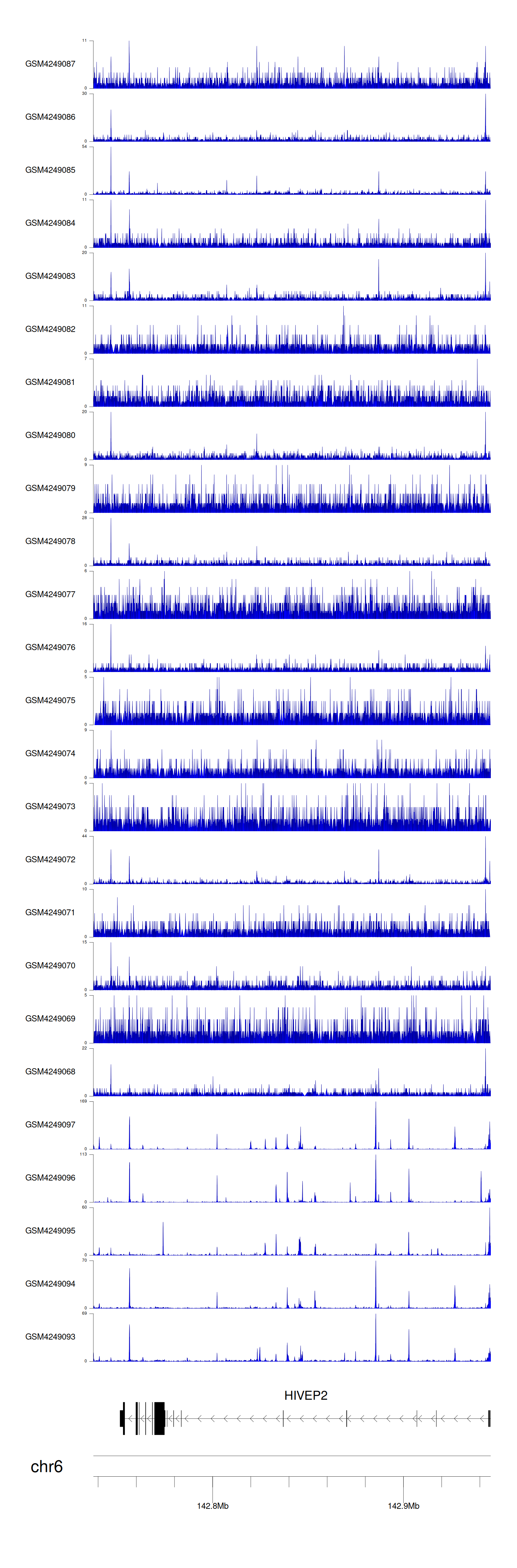 > Dataset: GSE143026 - HIVEP2 peak across samples