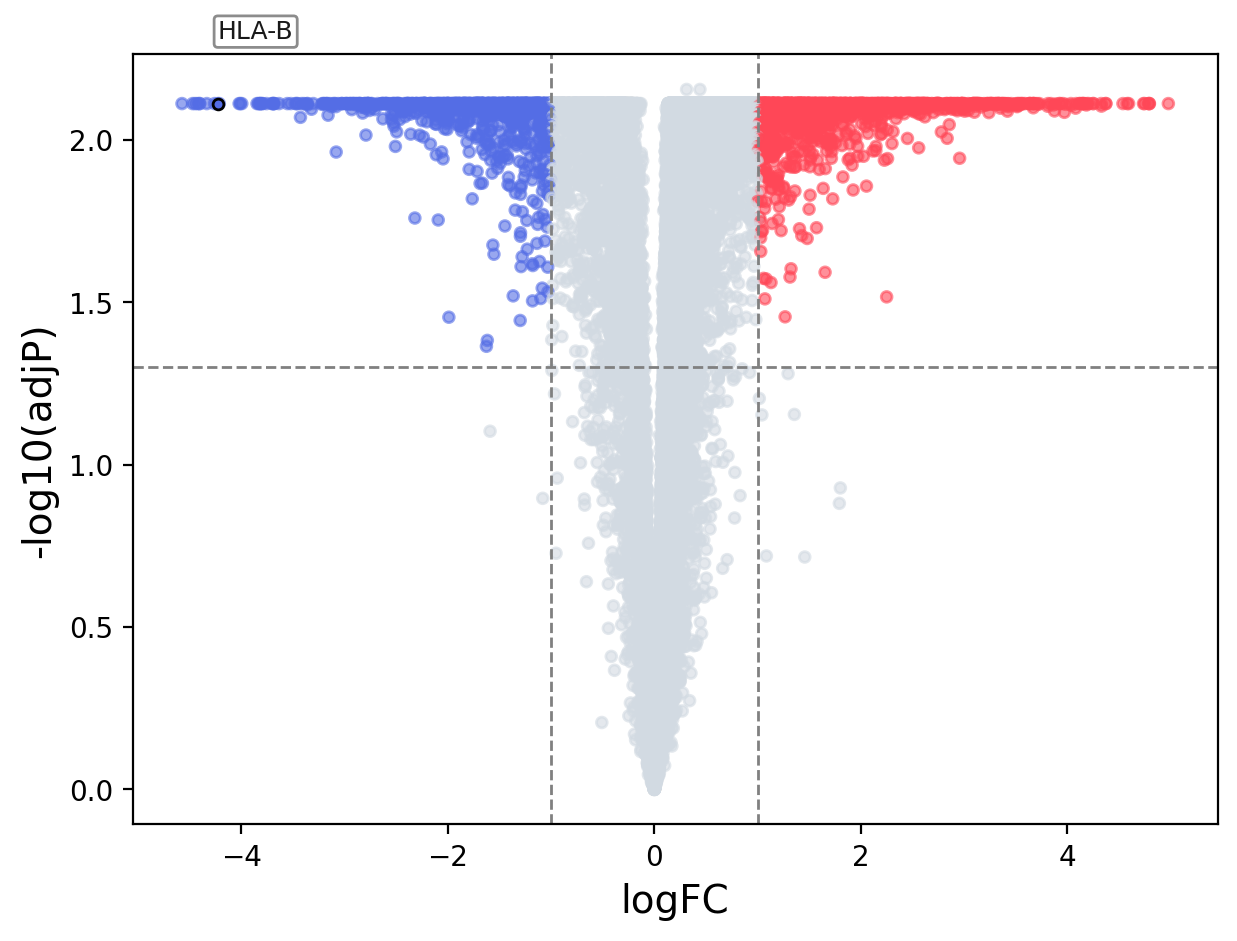 When the query gene is differentially changed in the dataset, a volcano/bar plot will be displayed.