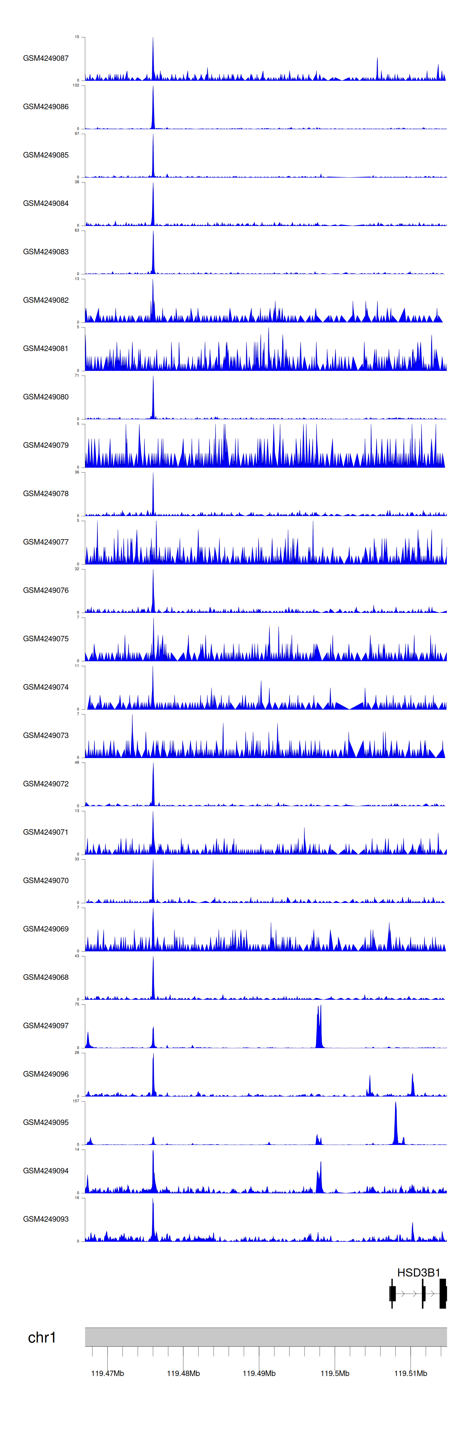 > Dataset: GSE143026 - HSD3B1 peak across samples