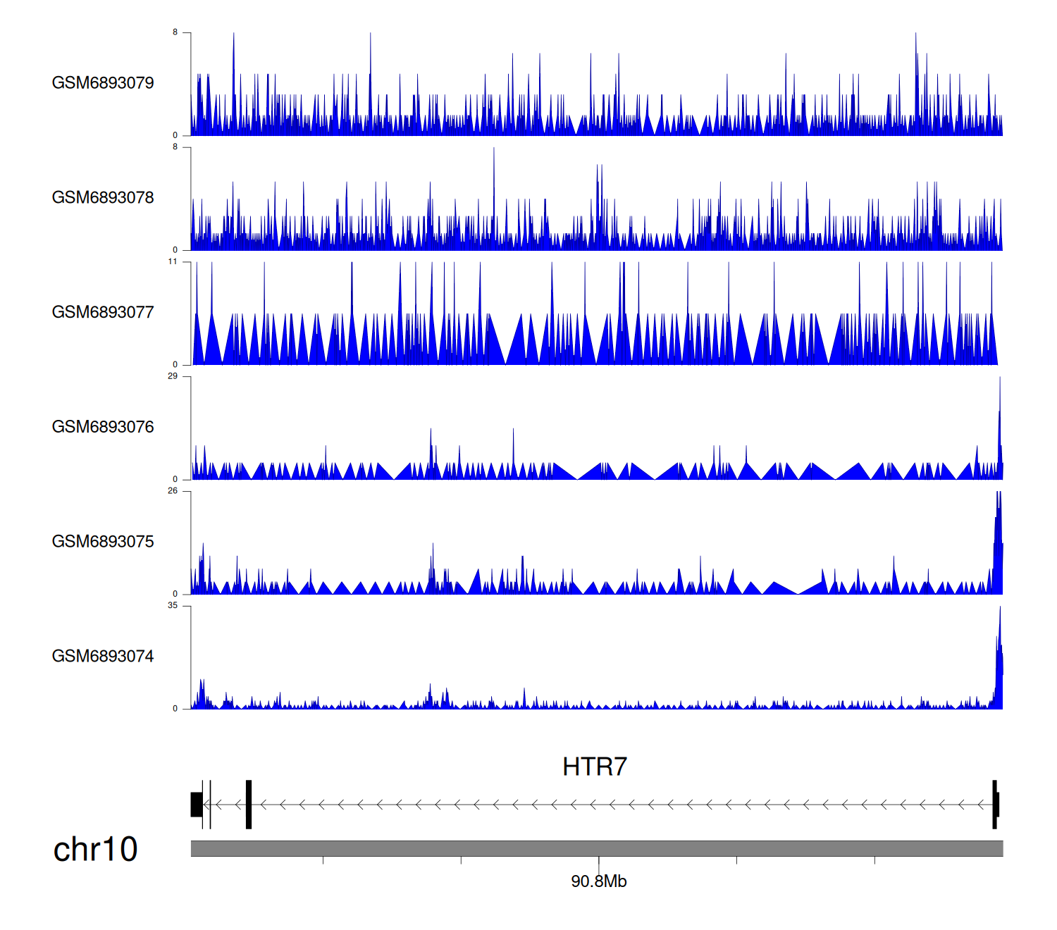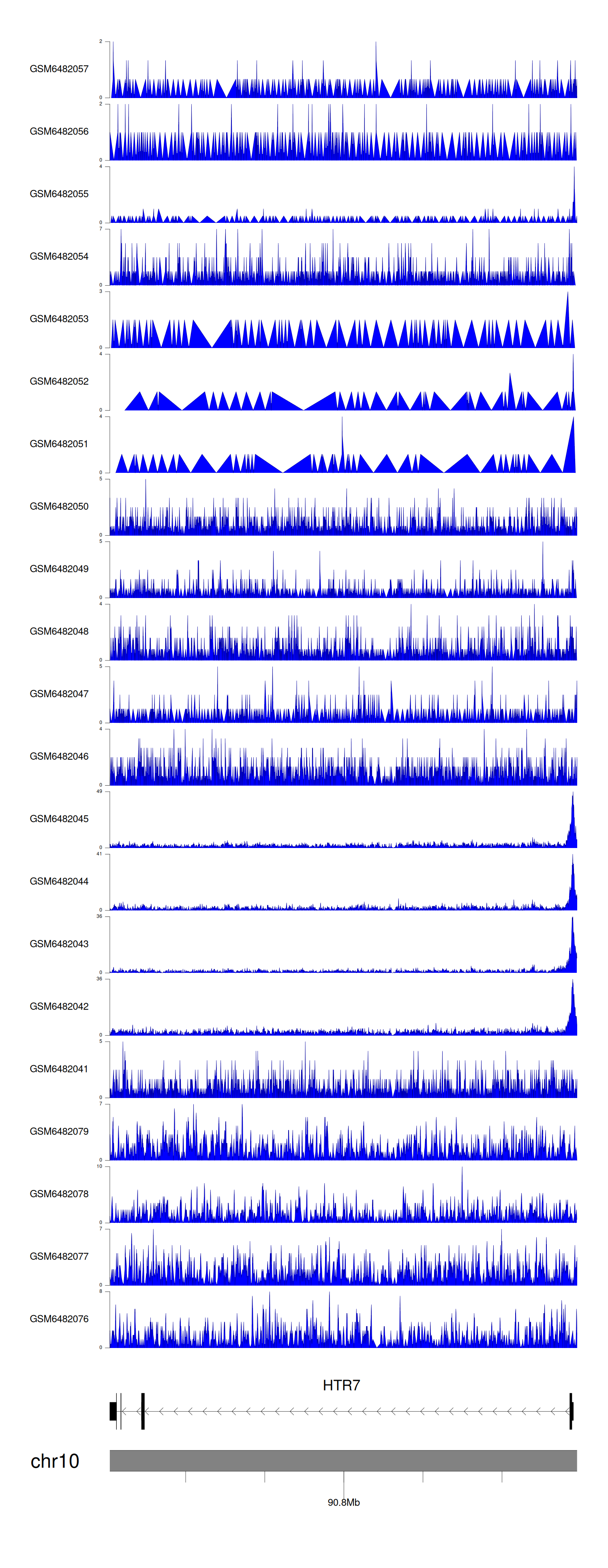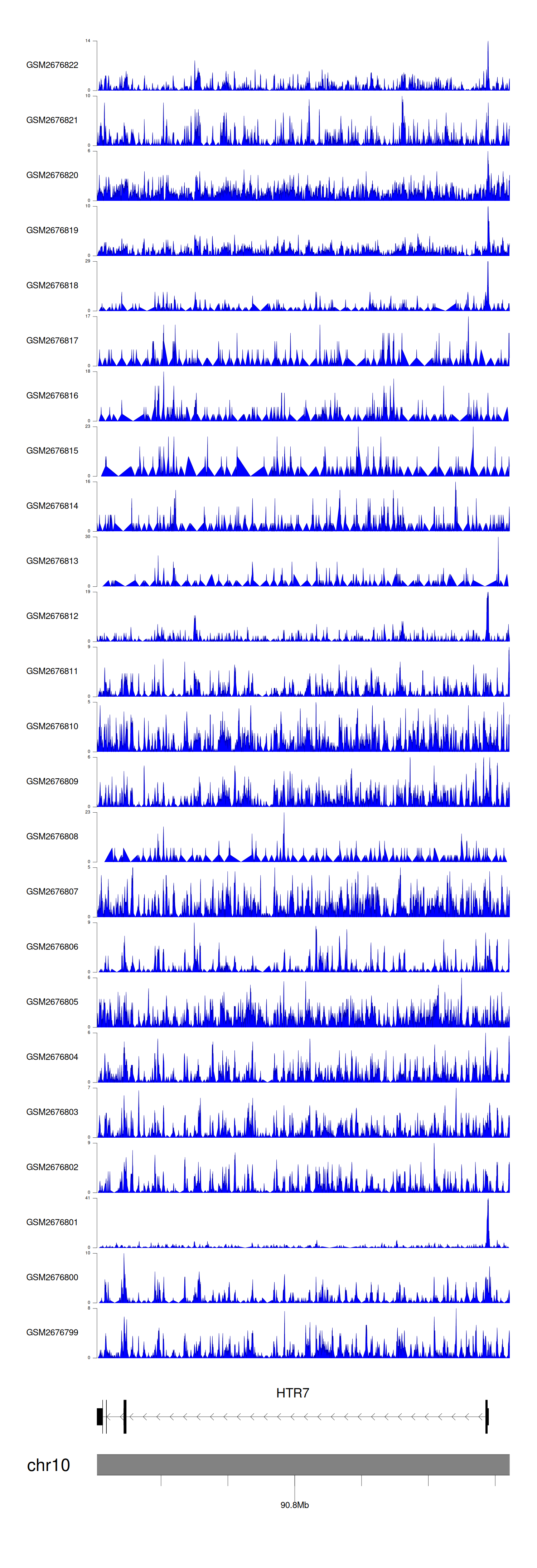 > Dataset: GSE165703 - HTR7 peak across samples