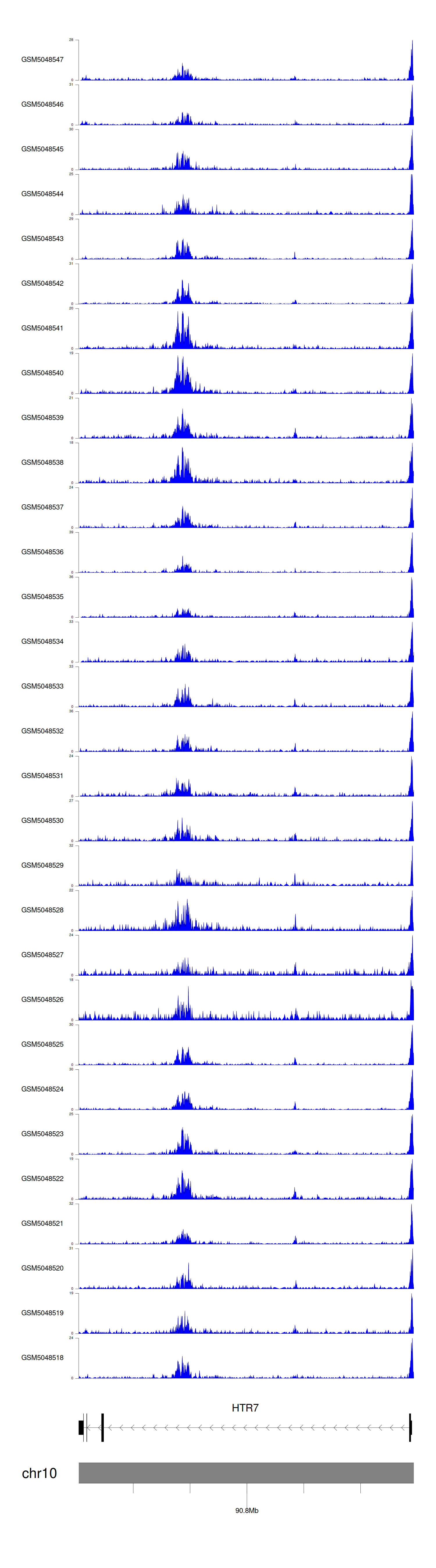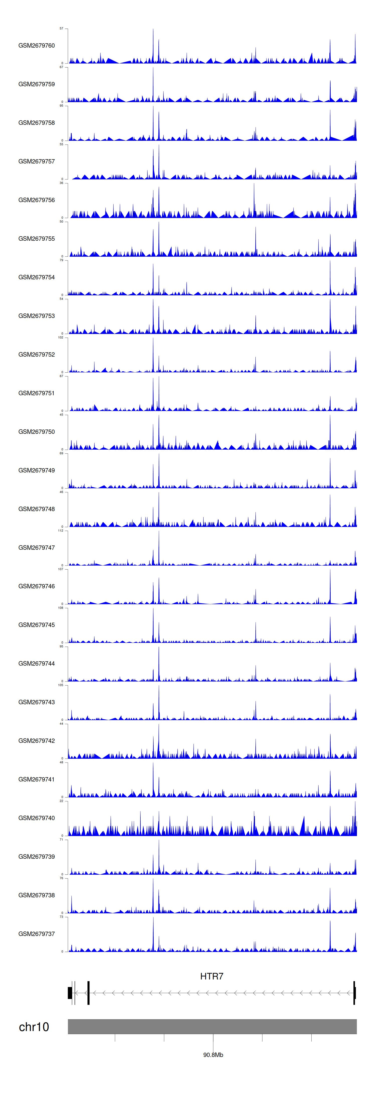 > Dataset: GSE30738 - HTR7 peak across samples