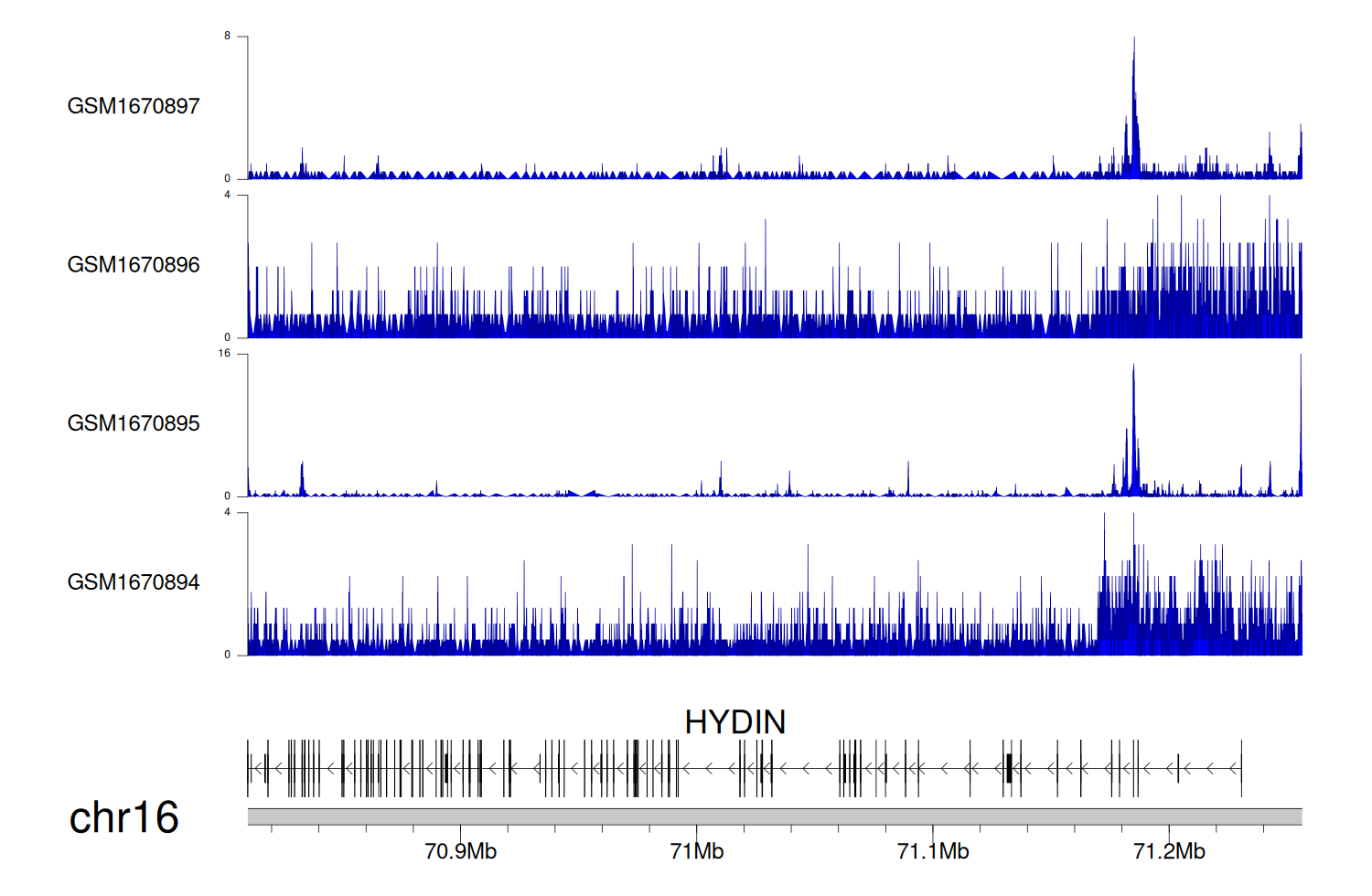 > Dataset: GSE68402 - HYDIN peak across samples