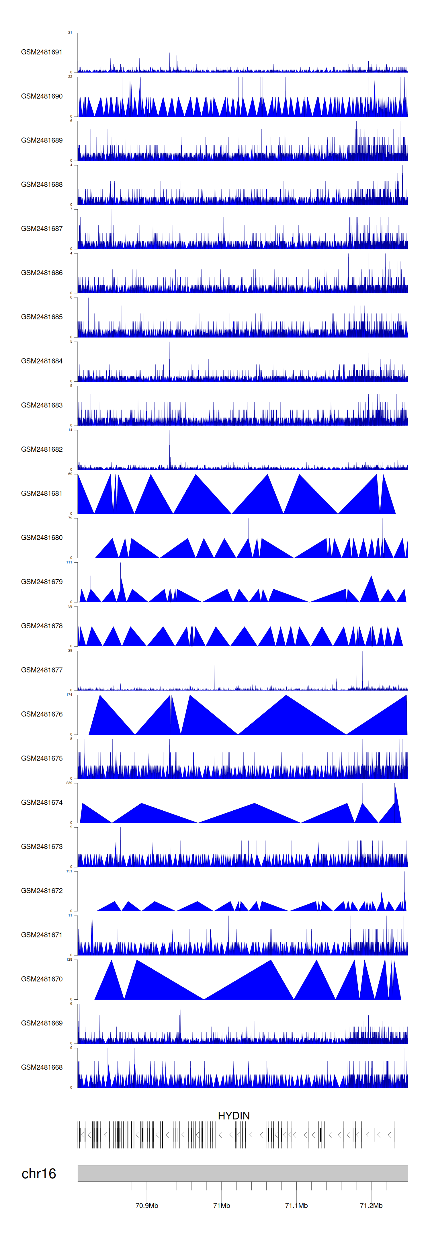 > Dataset: GSE94732 - HYDIN peak across samples