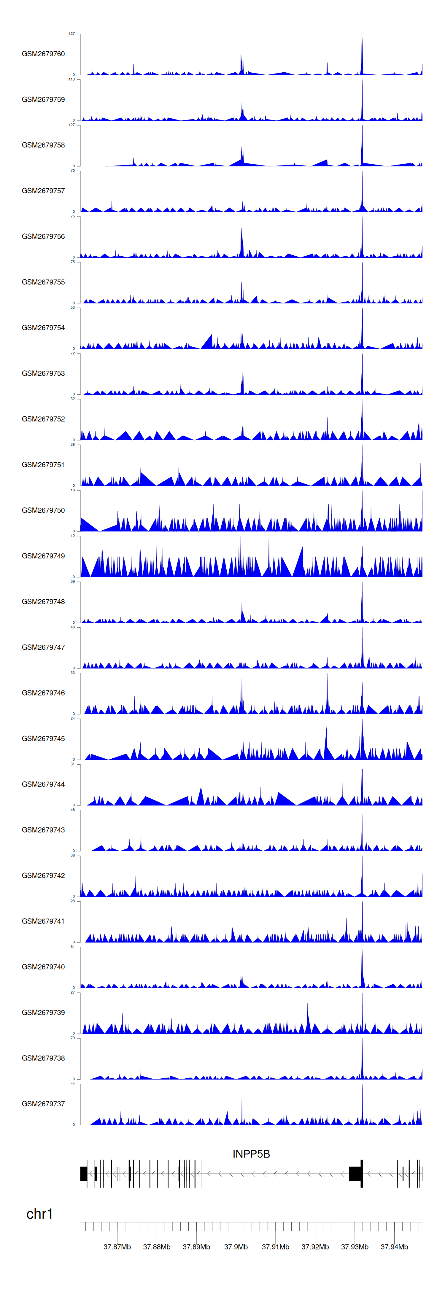 > Dataset: GSE100376 - INPP5B peak across samples