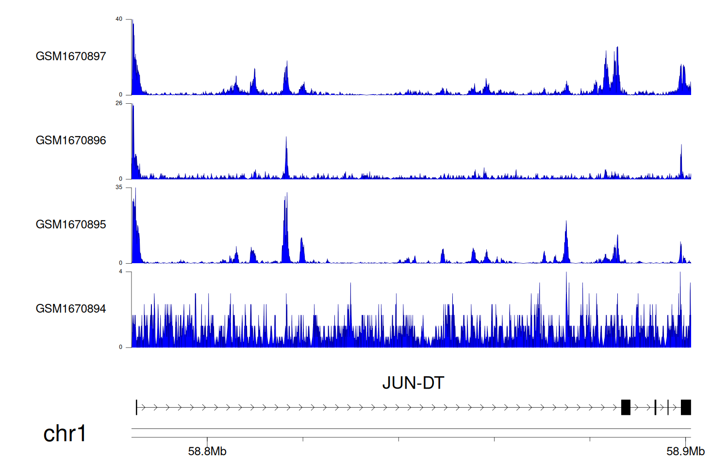 > Dataset: GSE68402 - JUN-DT peak across samples