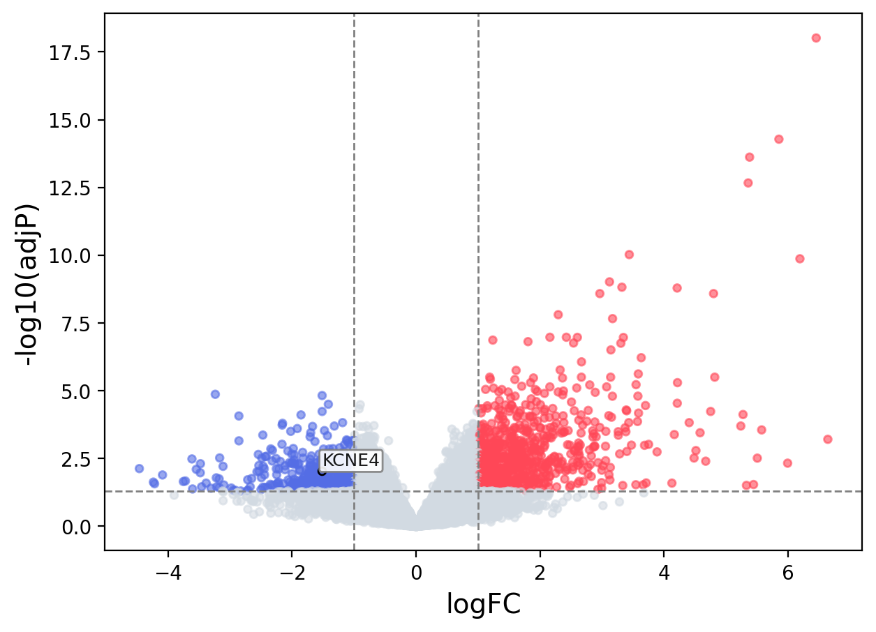 When the query gene is differentially changed in the dataset, a volcano/bar plot will be displayed.