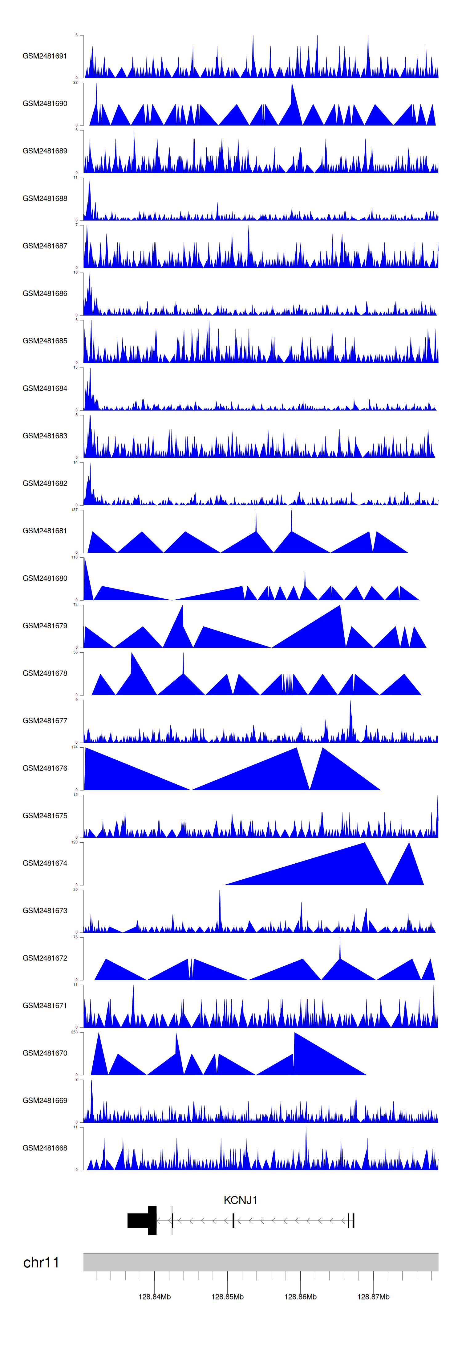 > Dataset: GSE94732 - KCNJ1 peak across samples