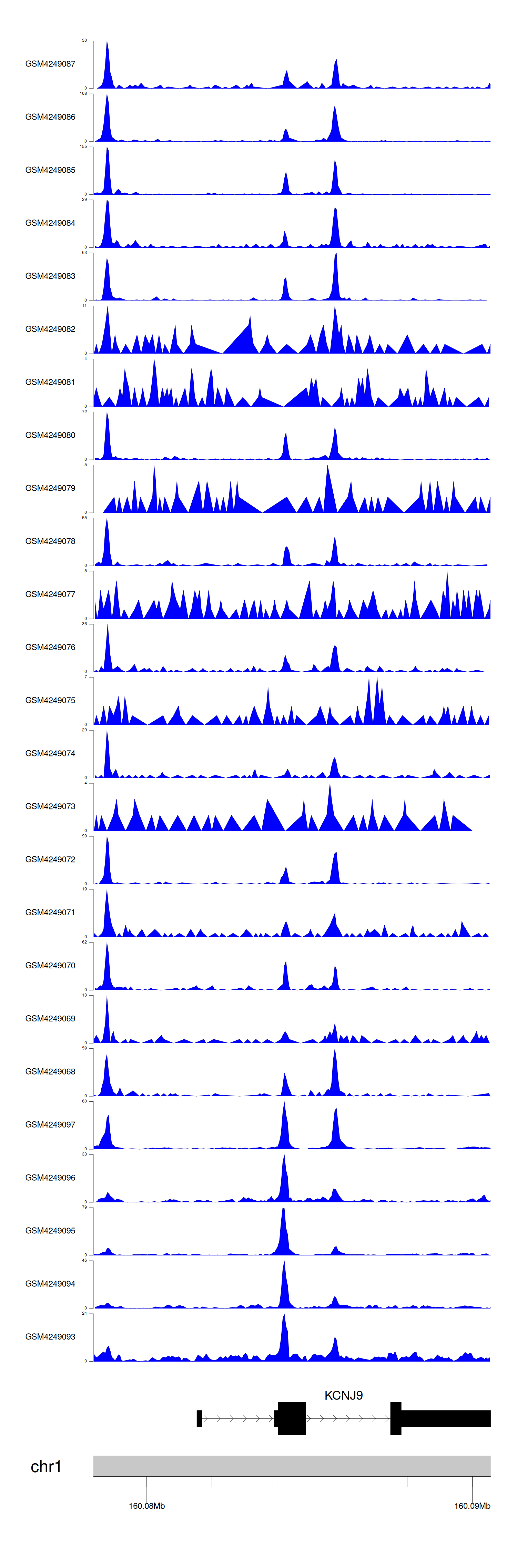 > Dataset: GSE143026 - KCNJ9 peak across samples