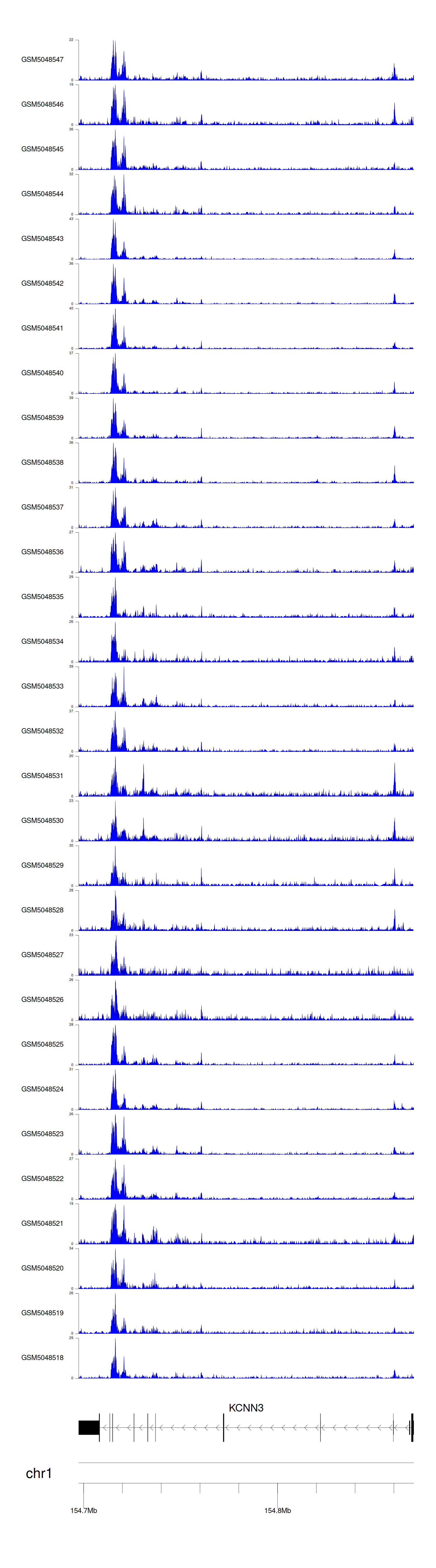 > Dataset: GSE220859 - KCNN3 peak across samples